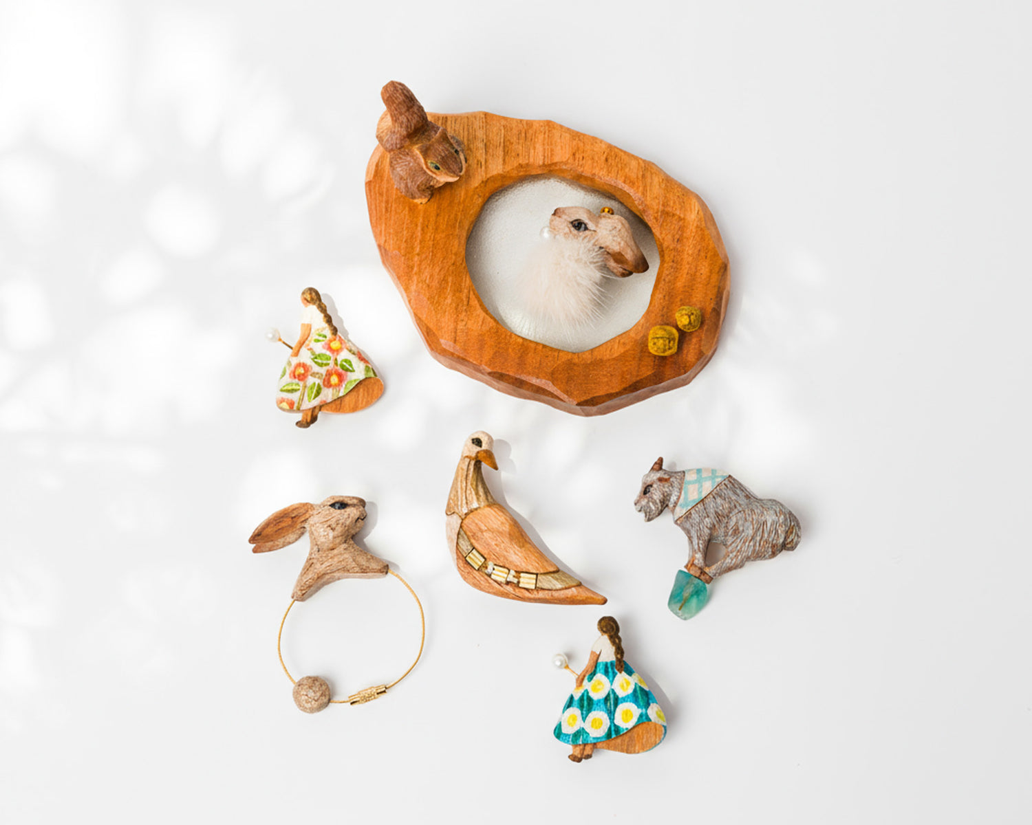 動物をモチーフしたかわいいオブジェなどユーモアと独自の視点を大切に、日常に寄り添う作品です。