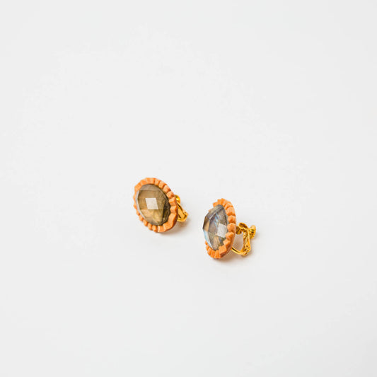 kitona-耳飾り-プリーツフラワーL-ラブラドライト+水晶-ピアス/イヤリング
