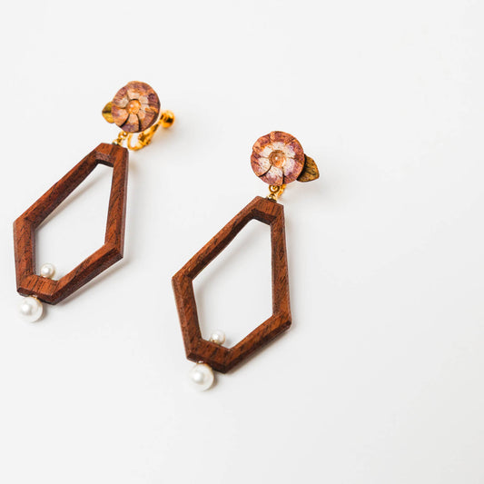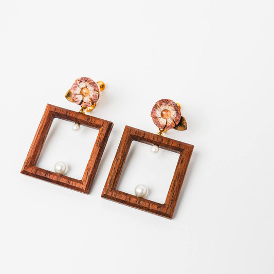 kitona-耳飾り-花と多角形-ナチュラル-イヤリング