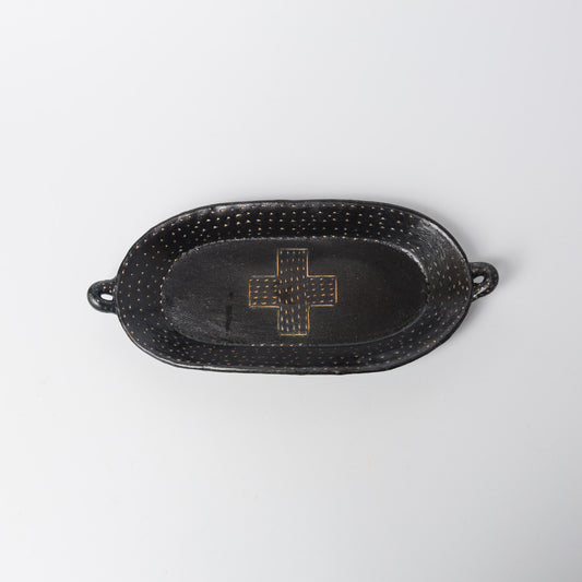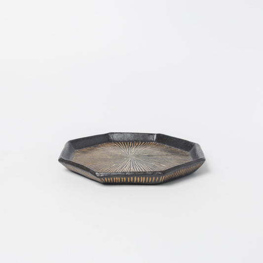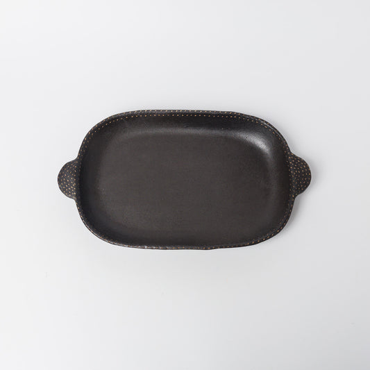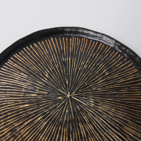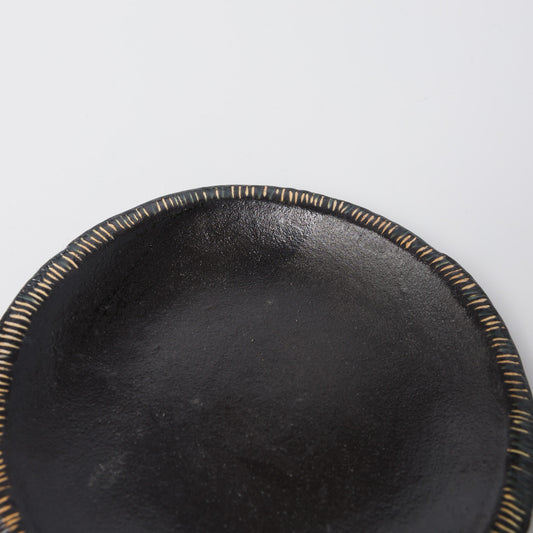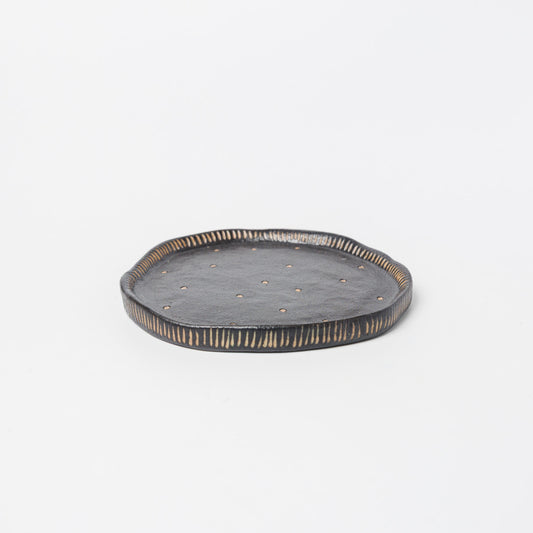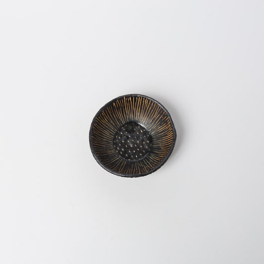 福岡・糸島の森の丘で作陶。黒い素地に手描きの水玉や小花、線刻模様をあしらった独自のスタイルが特徴です。重くならず、モダンで可愛らしい黒のうつわが、日々の食卓にワクワクと彩りを添えます。