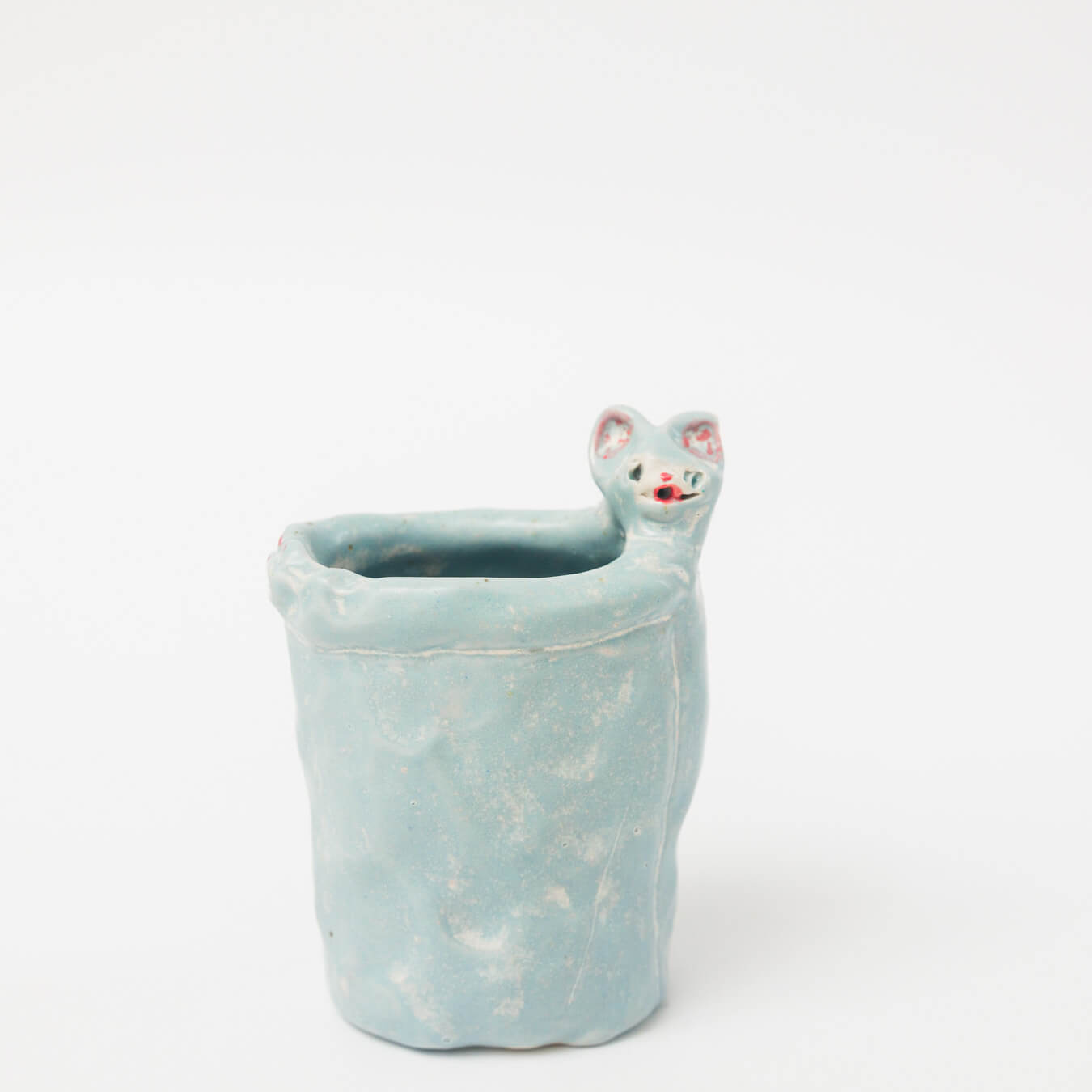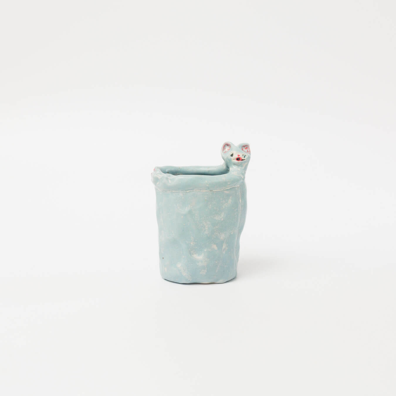 すべて手作業による制作のため、釉薬のムラやピンホール、ヒビ、形状の歪み、がたつきなどが見られます。廣田哲哉さんの作品は、大胆でユーモラスな作風ゆえに、そうした表情が強く出るのも魅力のひとつです。手仕事ならではの個性としてお楽しみいただければ幸いです。ご理解のうえ、ご購入ください。