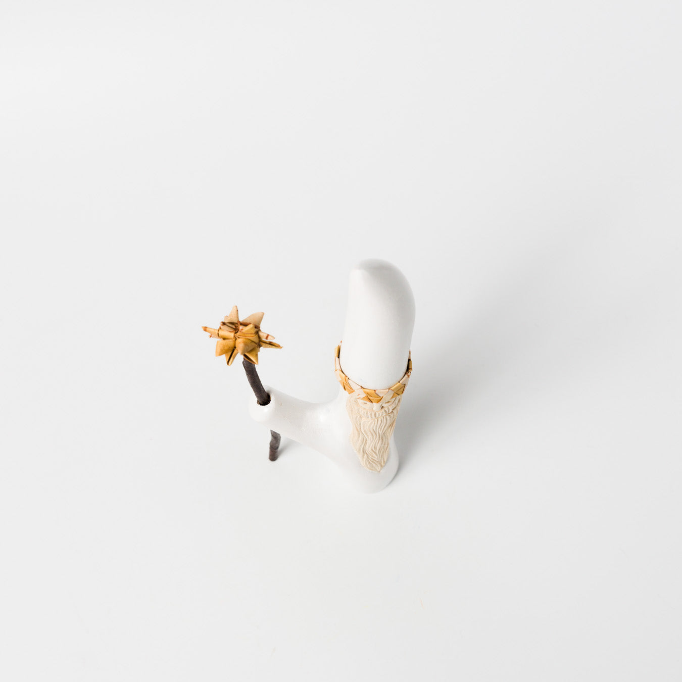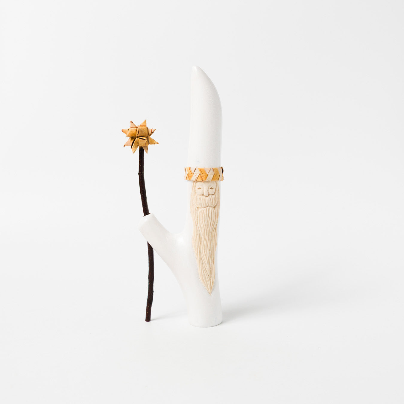手に持つ“杖”は白樺の小枝。