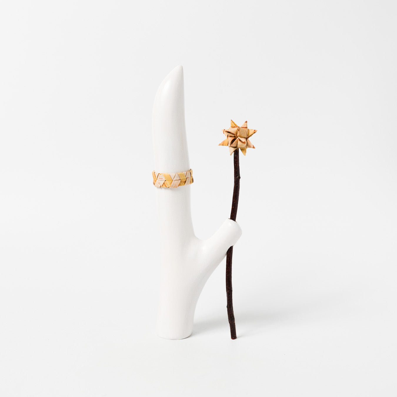 その先に輝く“星”は白樺の樹皮を丁寧に編んでつくられたもの。