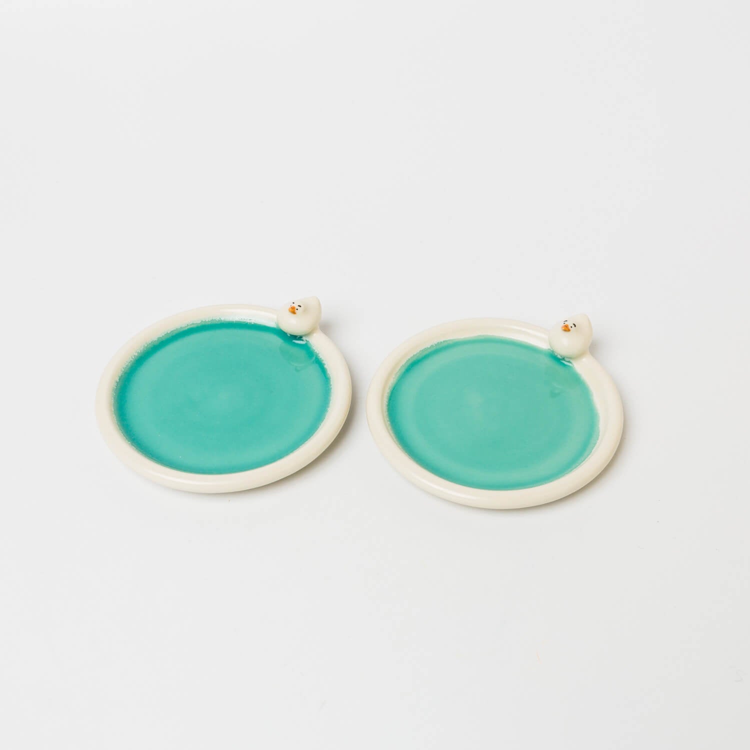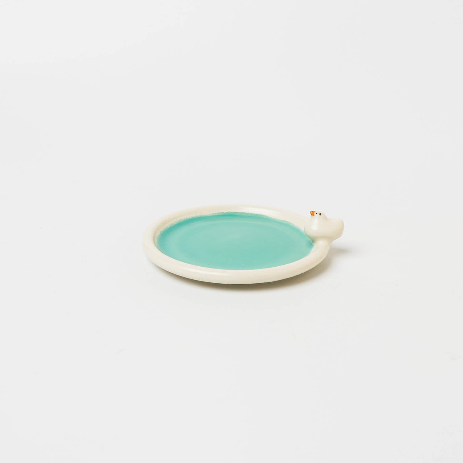 アヒルが水辺にたたずむような、のんびりとした雰囲気の小さな丸皿。