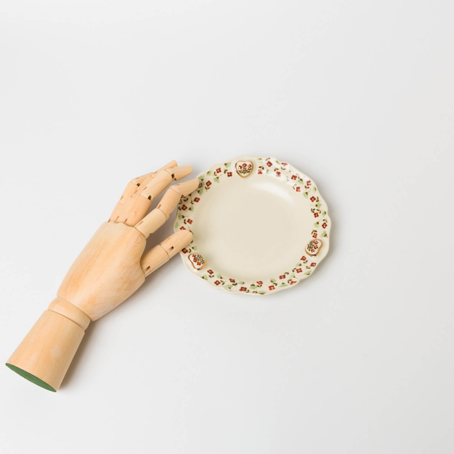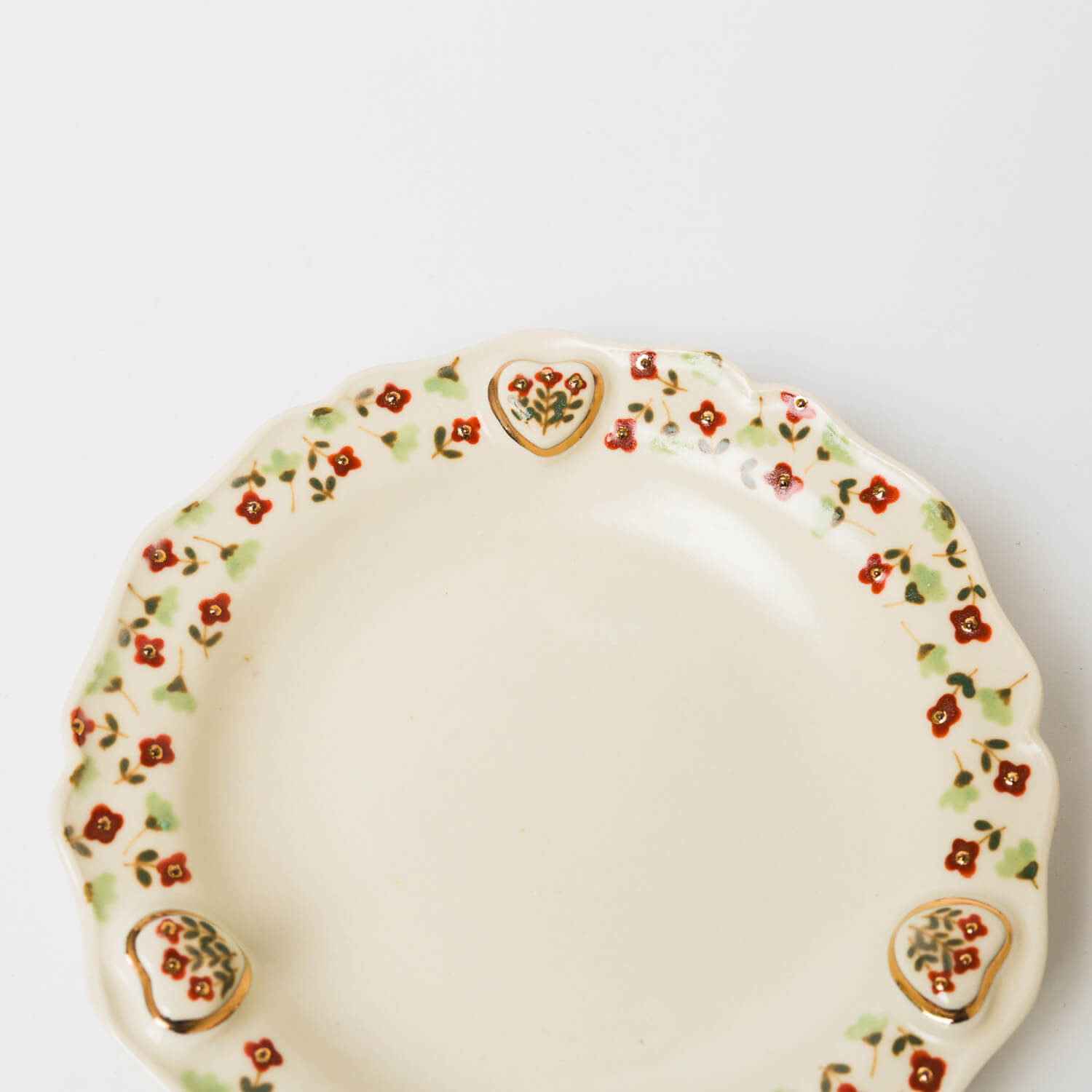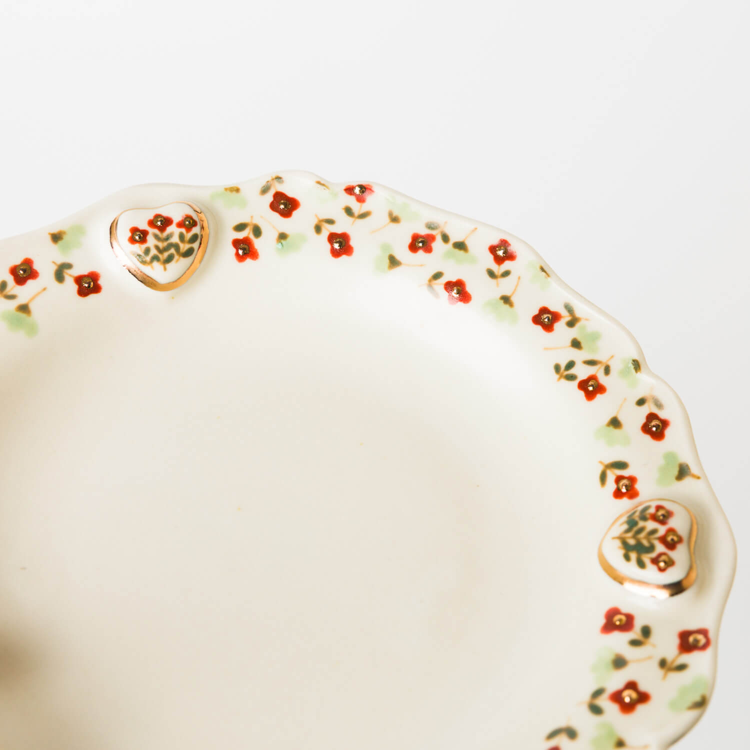 縁に施されたレリーフと金彩、草花文様が印象的なお皿。