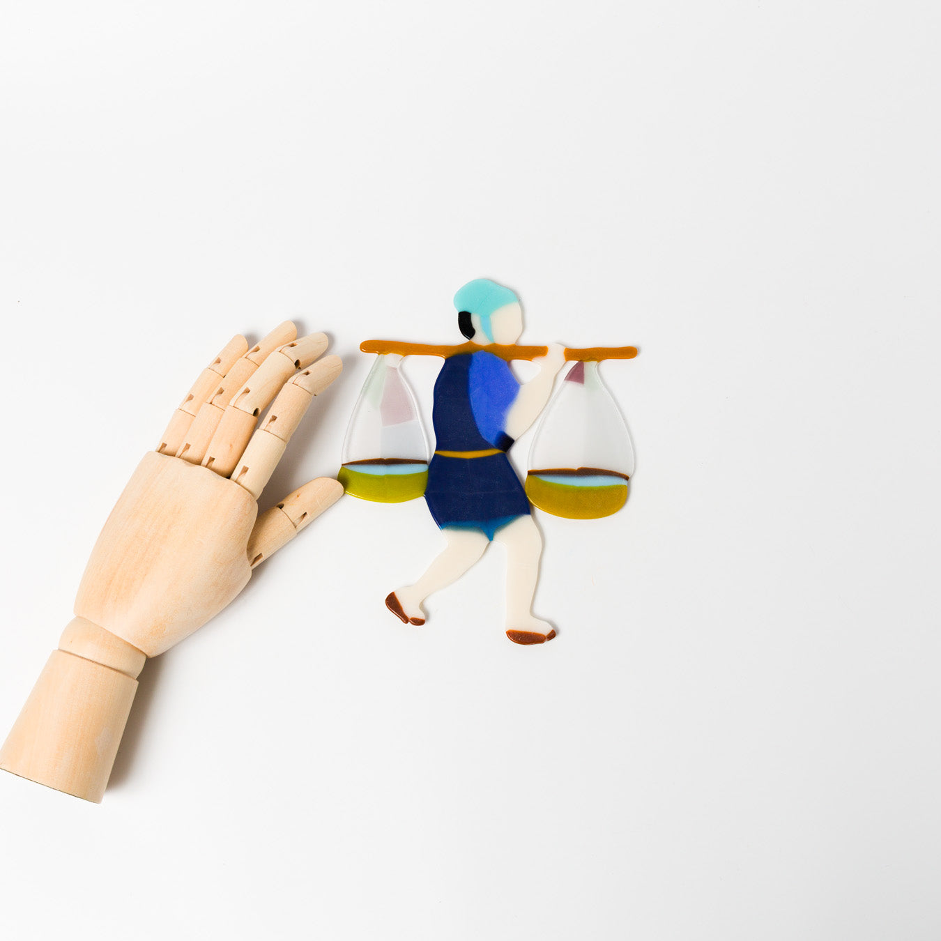 荒井美乃里-ガラスの壁飾り「ぼてふり」