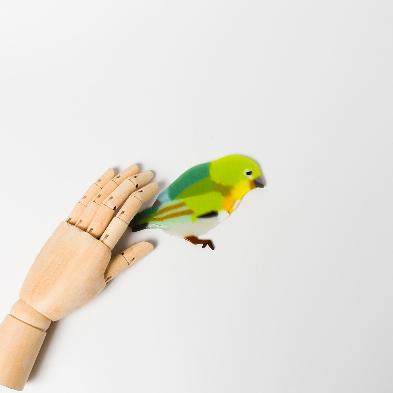 荒井美乃里-ガラスの壁飾り「メジロ」