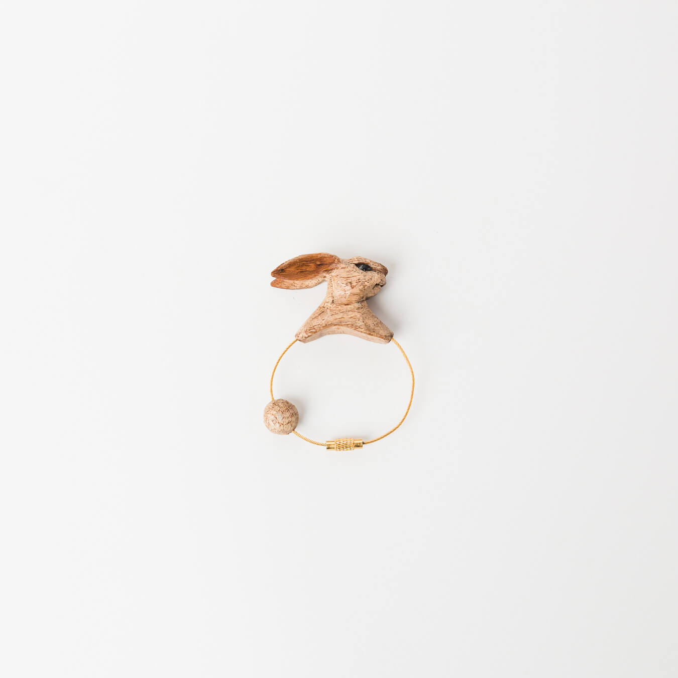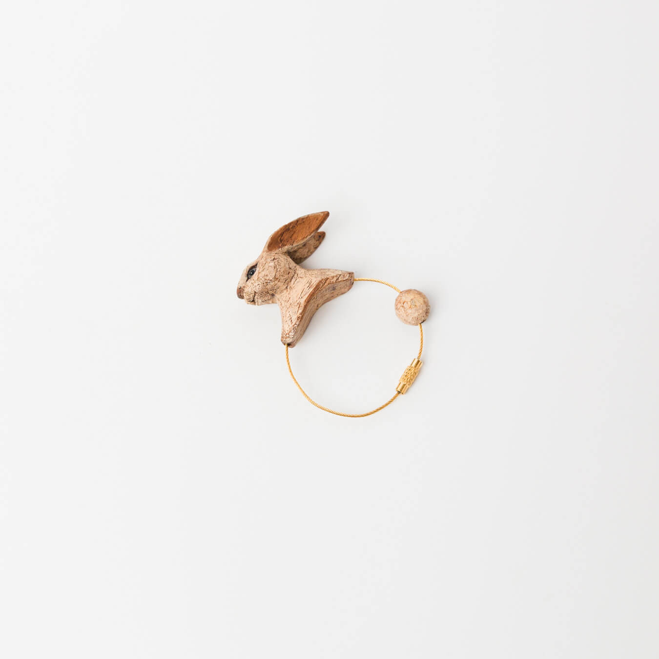 愛らしいうさぎのトルソーをかたどった木製キーホルダー。