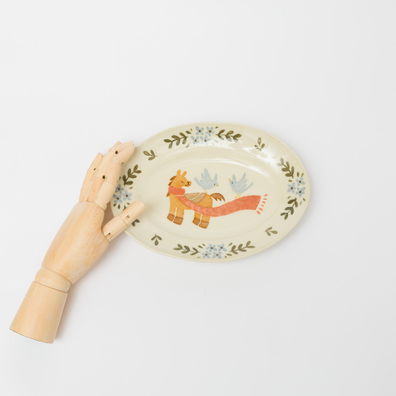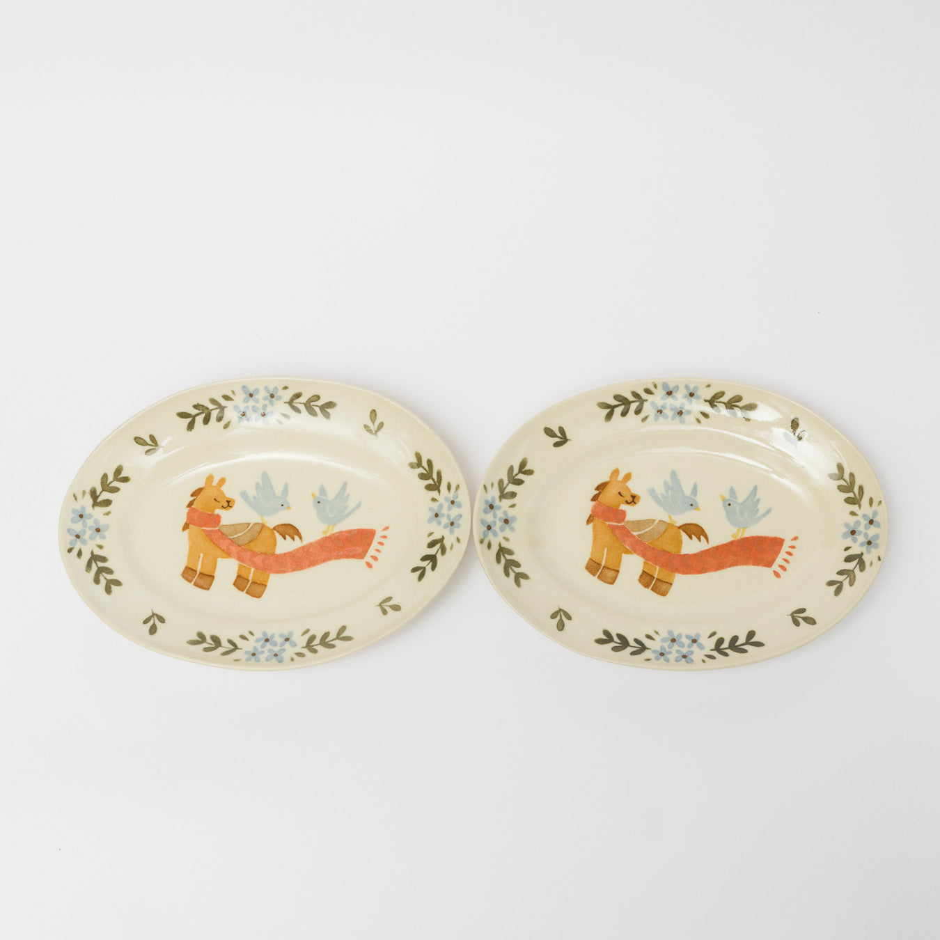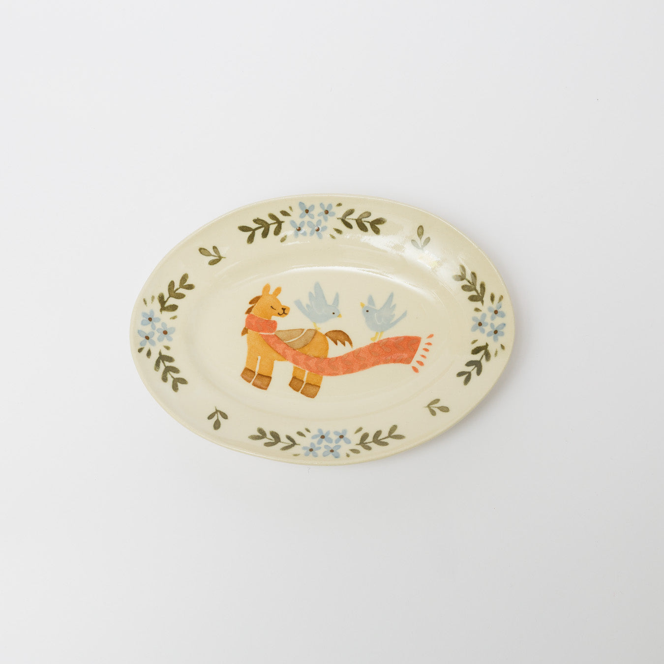 物語のような絵付けが印象的なだ円皿。