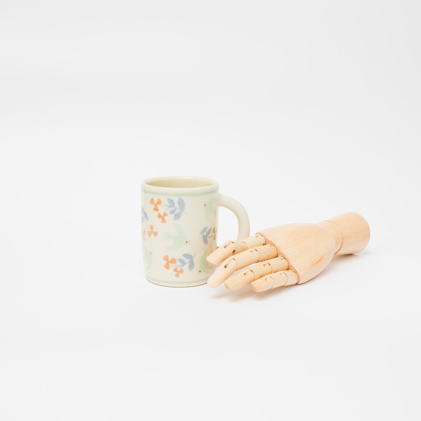 かわいらしい絵付けが印象的なマグ。