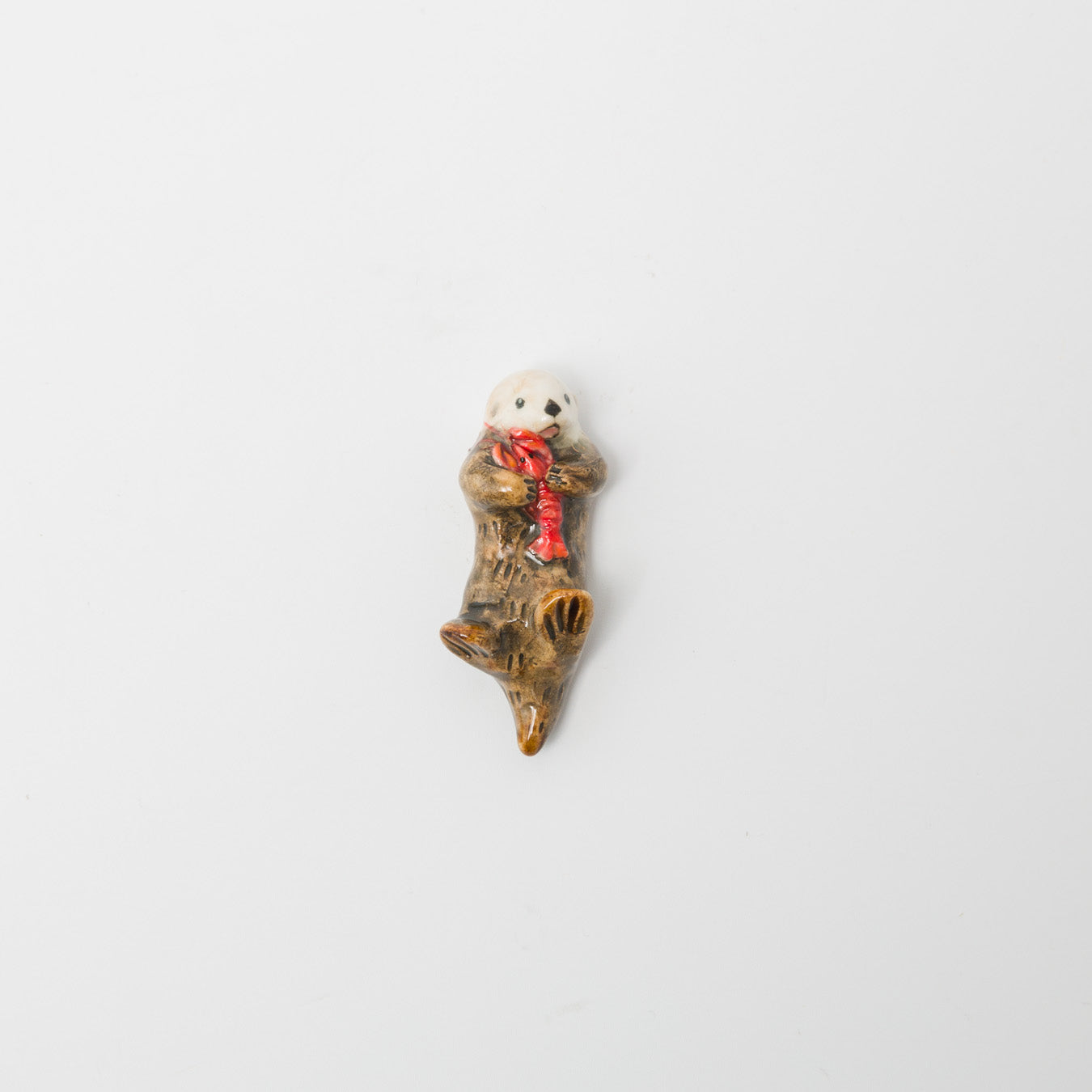 仰向けでプカプカと海に浮かんでいるような、遊び心満載のラッコ型箸置きです。ふっくらとしたお腹の上には、貝殻やヒトデなどのお気に入りアイテムを大事そうに抱えています。食卓にお箸と一緒に並べれば、ラッコがのんびりとくつろいでいるような、なんともシュールで愛らしい情景が完成します。手のひらに乗る小ぶりなサイズ感なので、箸置きとしてだけでなく、そのまま小さなアートオブジェとして飾ったり、デスクの上のちょっとした癒しアイテムとして使うのもおすすめです。空間にほっこりとした温かみを与えてくれるユニークなアイテム。
