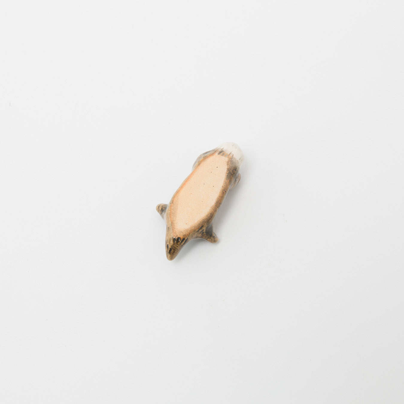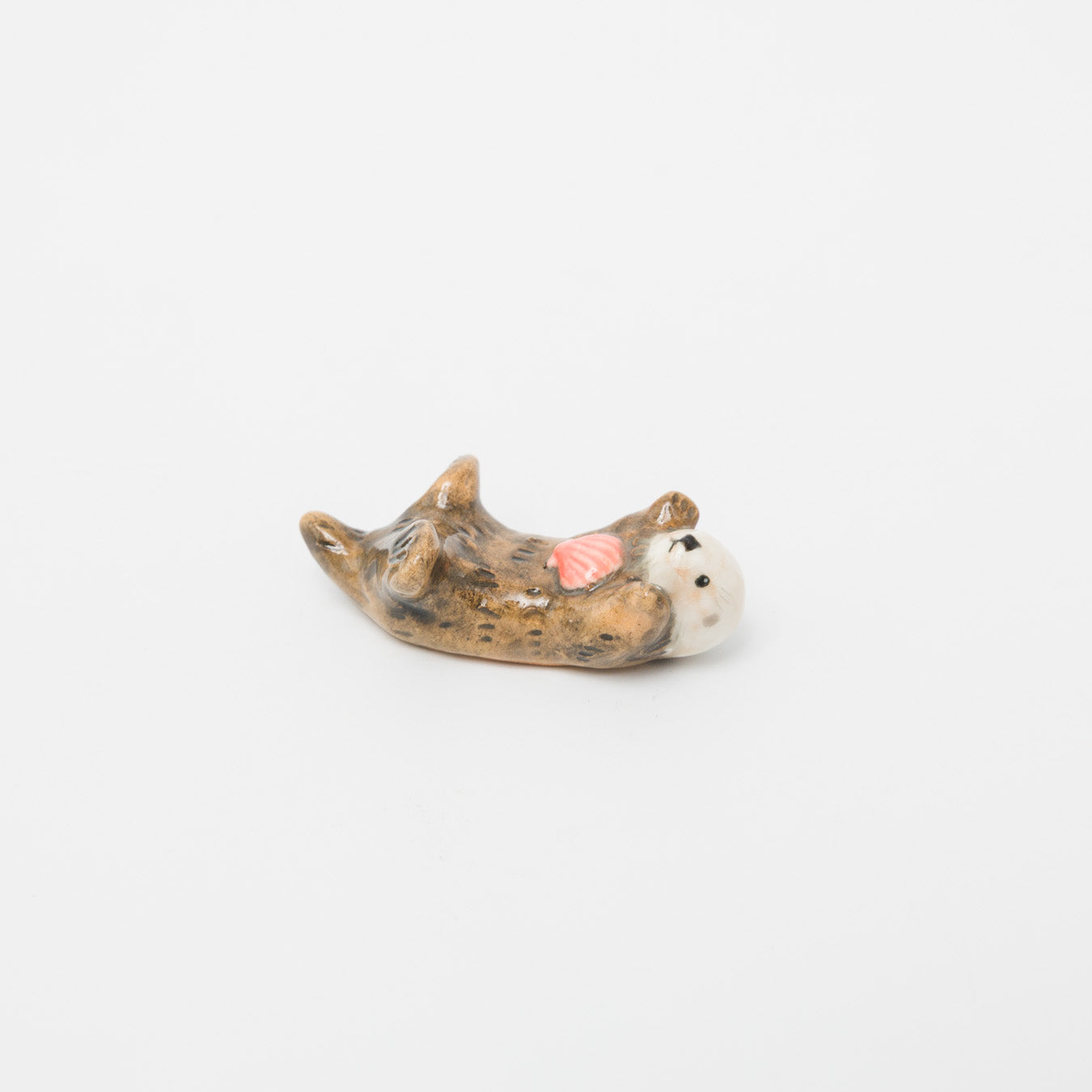 仰向けでプカプカと海に浮かんでいるような、遊び心満載のラッコ型箸置きです。ふっくらとしたお腹の上には、貝殻やヒトデなどのお気に入りアイテムを大事そうに抱えています。食卓にお箸と一緒に並べれば、ラッコがのんびりとくつろいでいるような、なんともシュールで愛らしい情景が完成します。手のひらに乗る小ぶりなサイズ感なので、箸置きとしてだけでなく、そのまま小さなアートオブジェとして飾ったり、デスクの上のちょっとした癒しアイテムとして使うのもおすすめです。空間にほっこりとした温かみを与えてくれるユニークなアイテム。