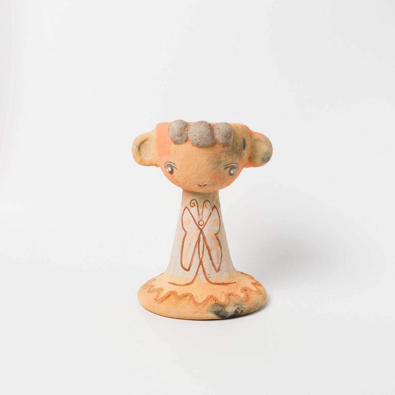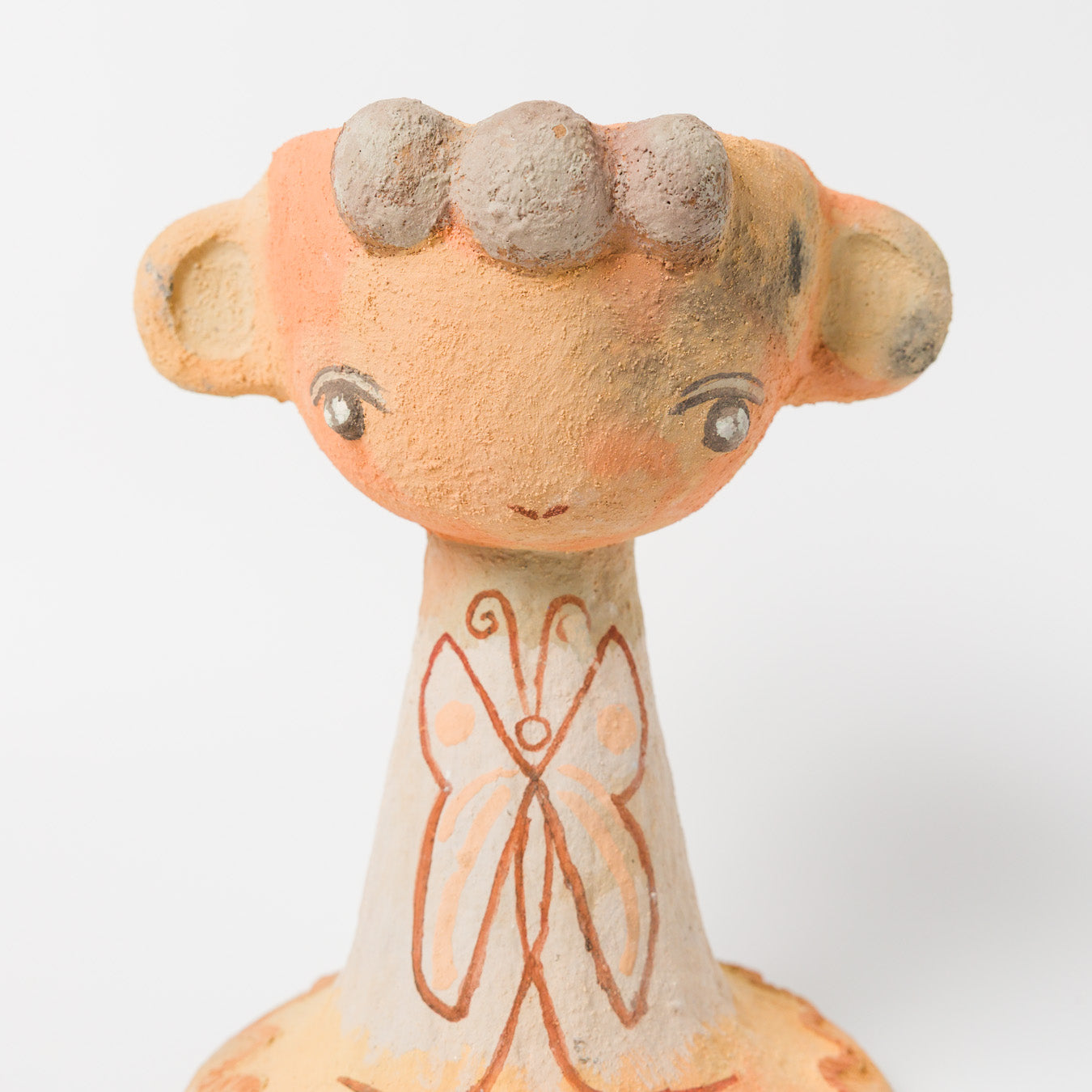 野焼きで作られた、土器の人形「土器子」シリーズ。優しく微笑む表情が印象的です。