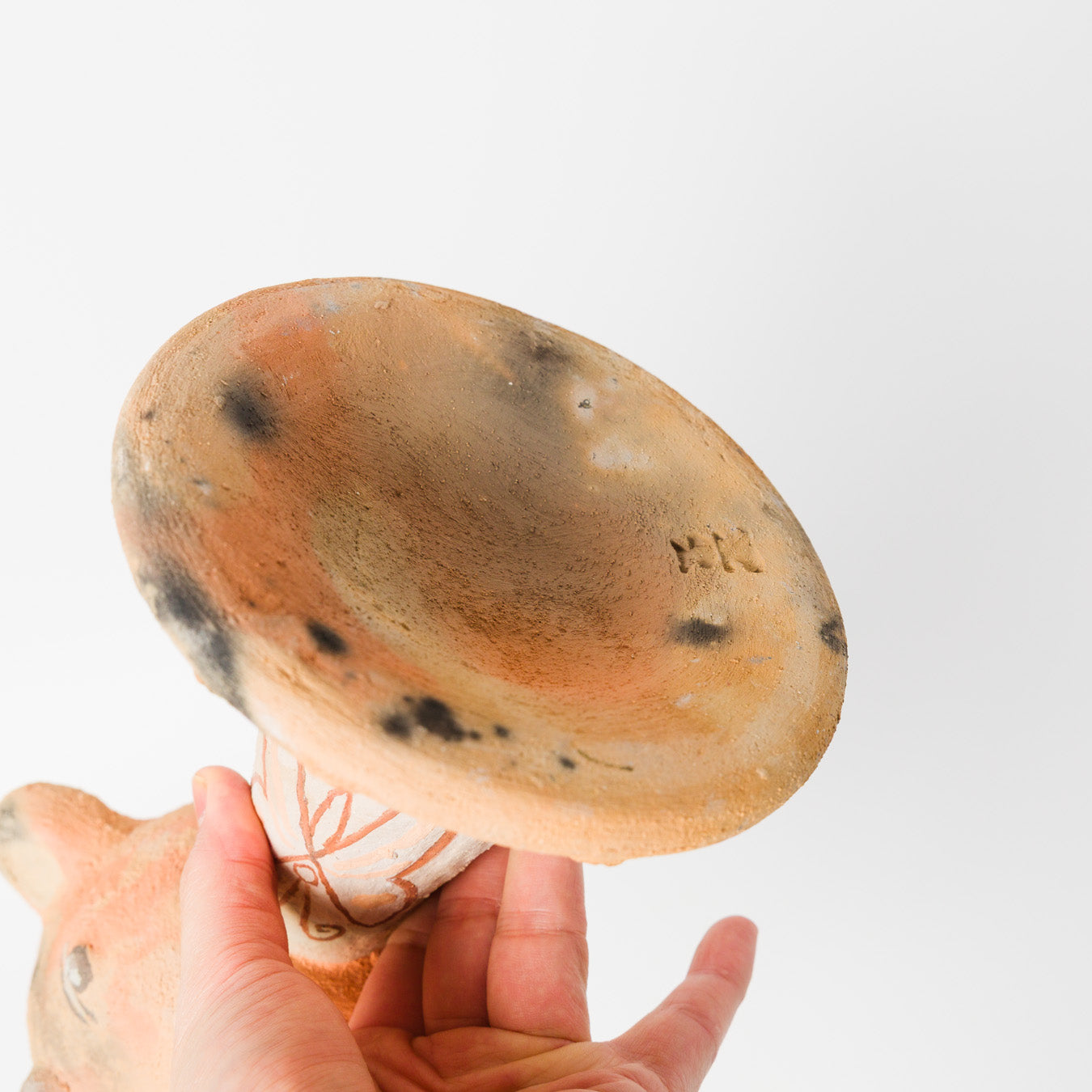 - 作品は野焼きした、とても繊細な土器です。 強い衝撃や落下に弱く、表面の小さな粒がポロポロと落ちることがあります。 お取り扱いの際は、どうぞ優しくご注意ください。