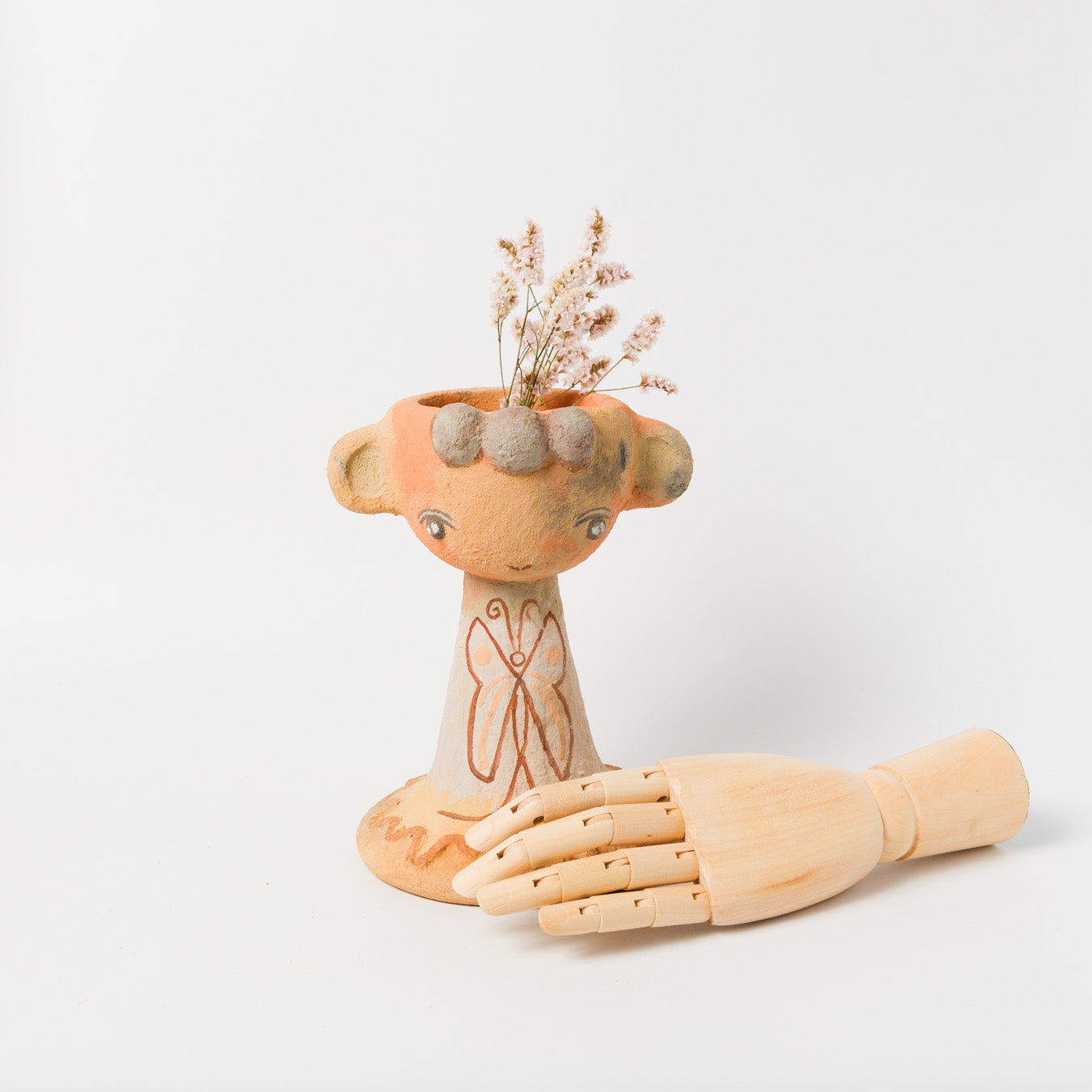 頭上に、ドライフラワーをいけたり花器としてもお楽しみいただけます。