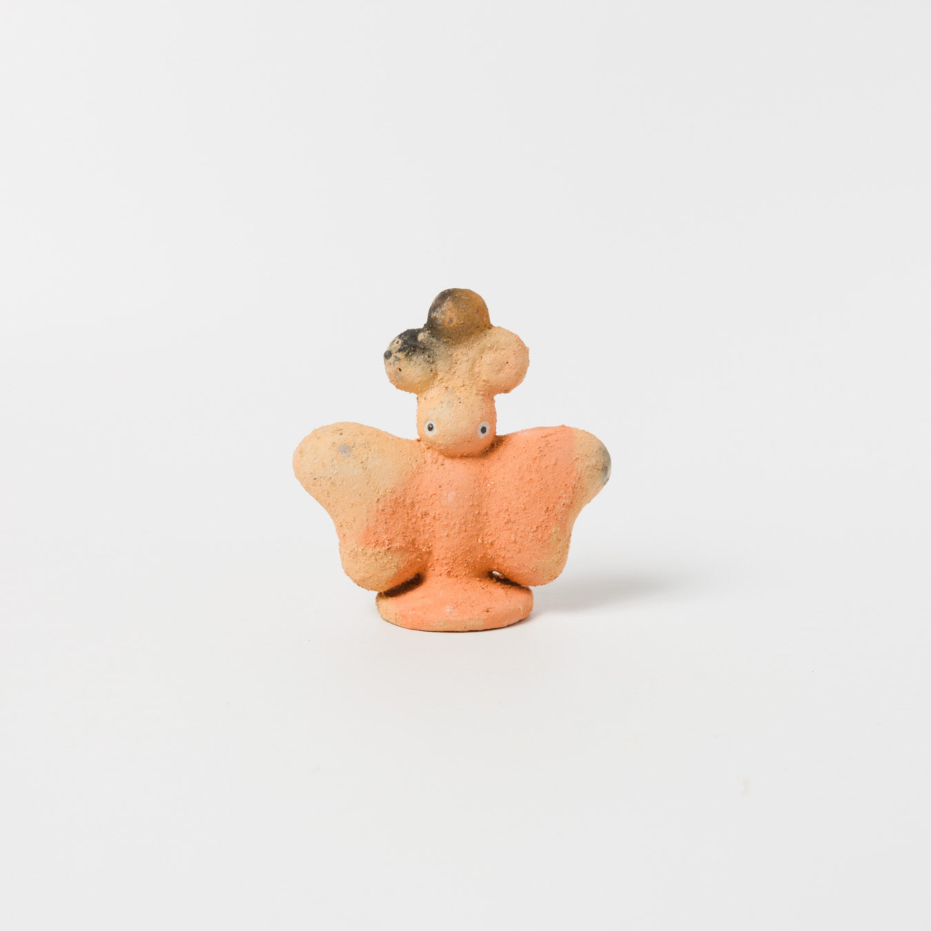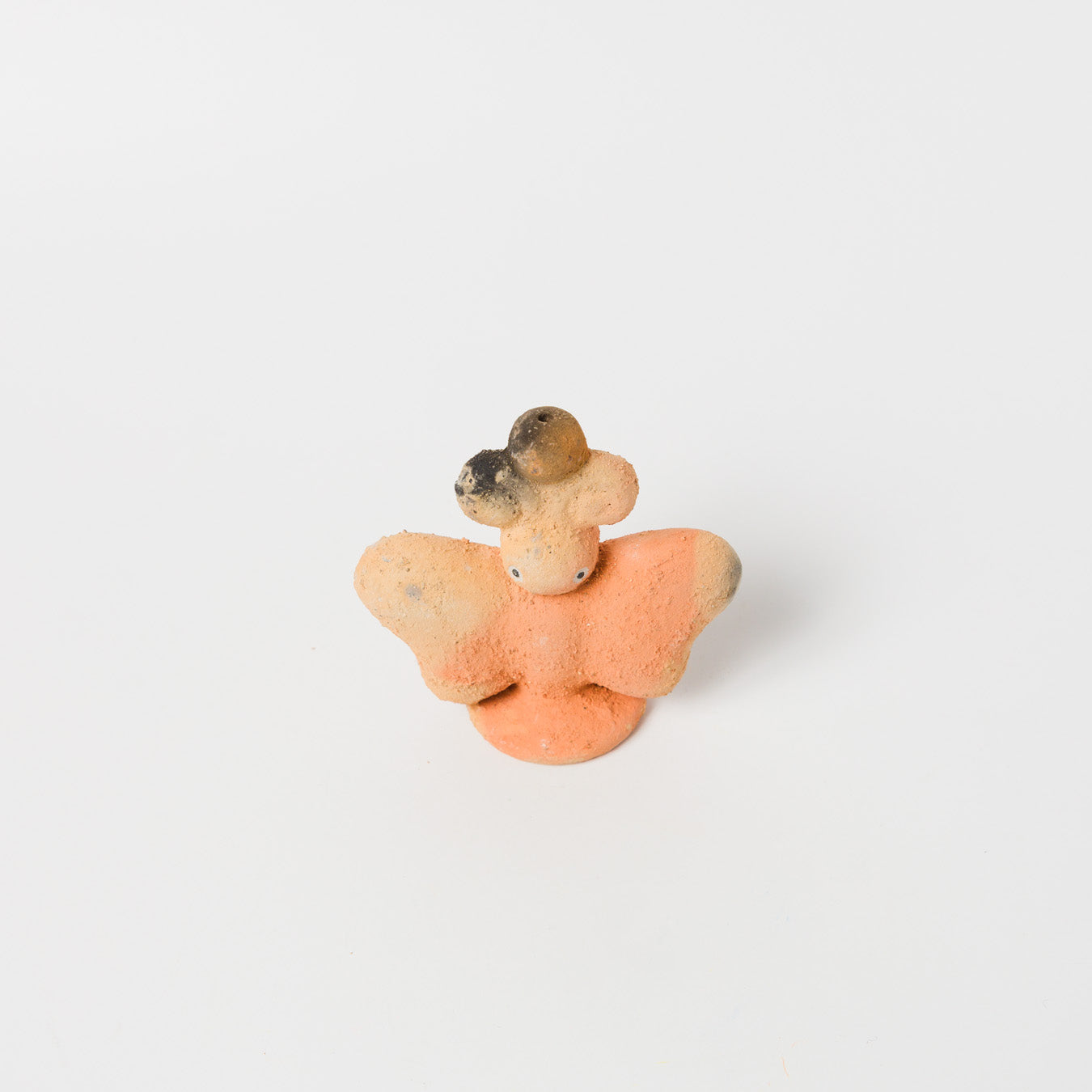 野焼きで作られた、蝶々型の小さな土器オブジェ。