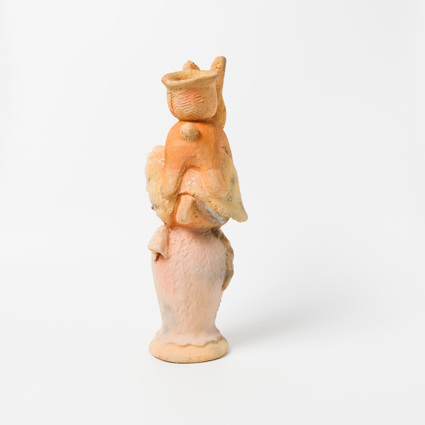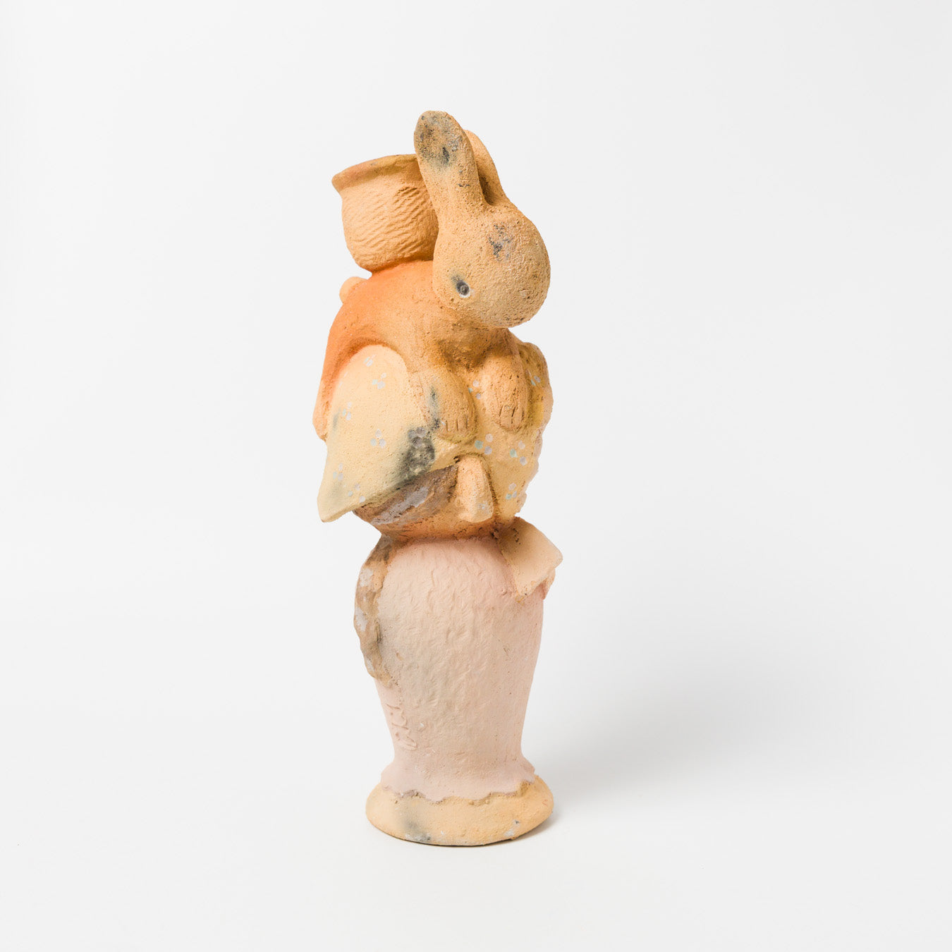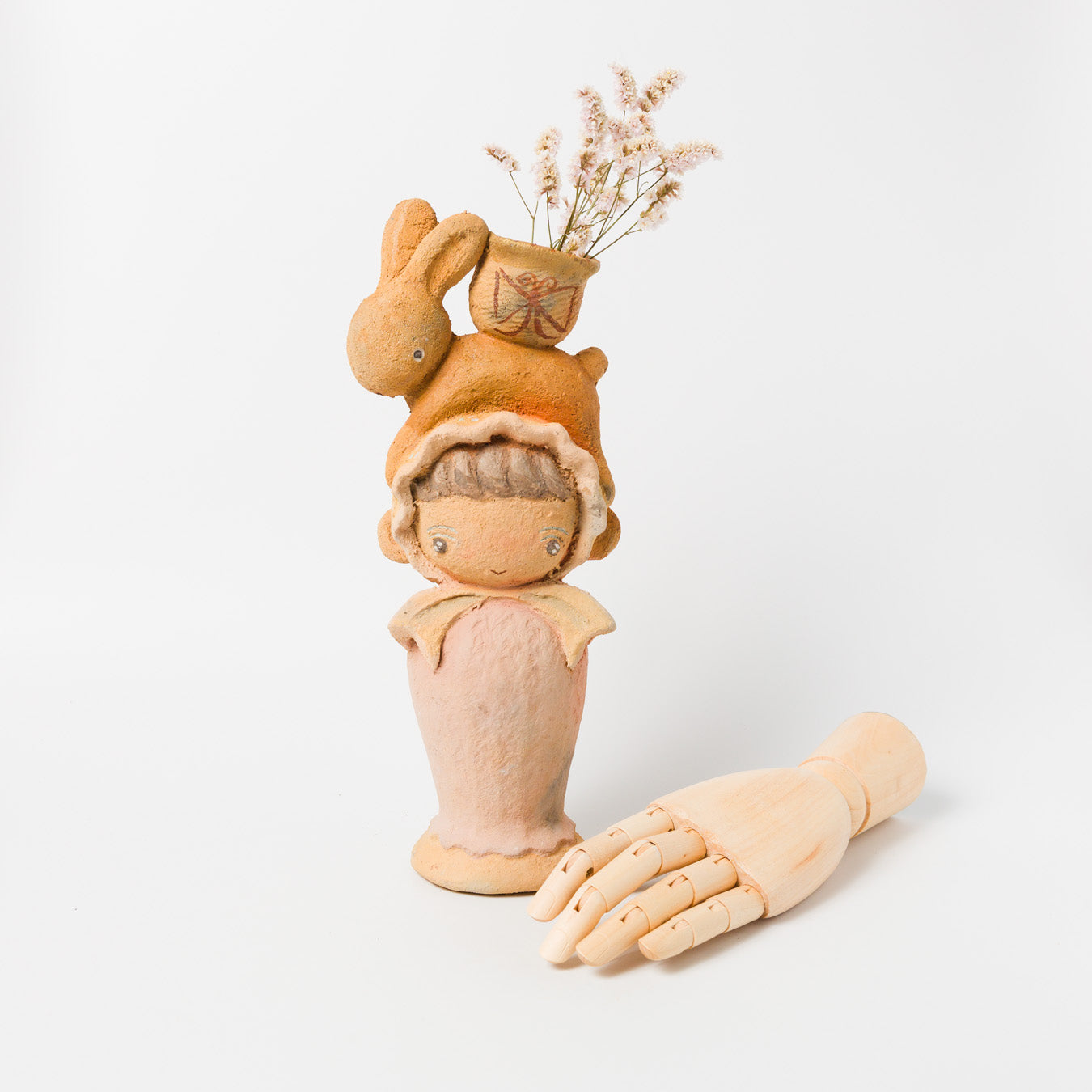 野焼きで作られた、土器の人形「土器子」シリーズ。うさぎ乗せたズキンが印象的です。