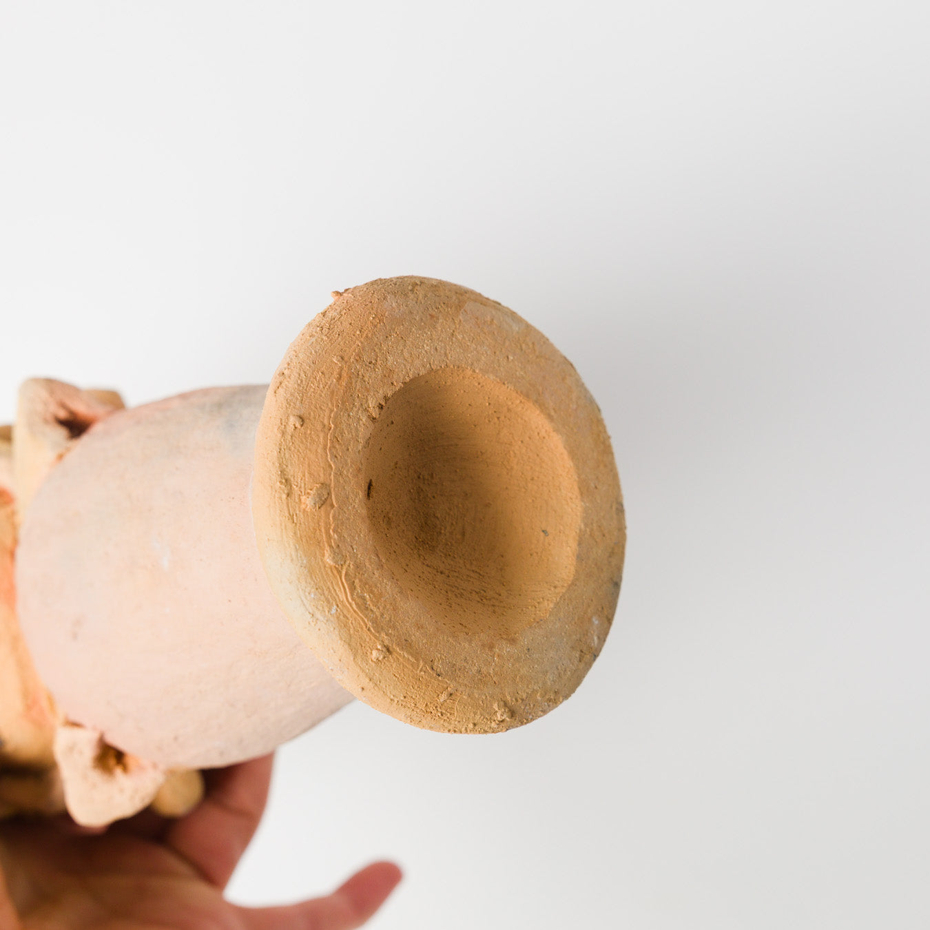 - 作品は野焼きした、とても繊細な土器です。 強い衝撃や落下に弱く、表面の小さな粒がポロポロと落ちることがあります。 お取り扱いの際は、どうぞ優しくご注意ください。