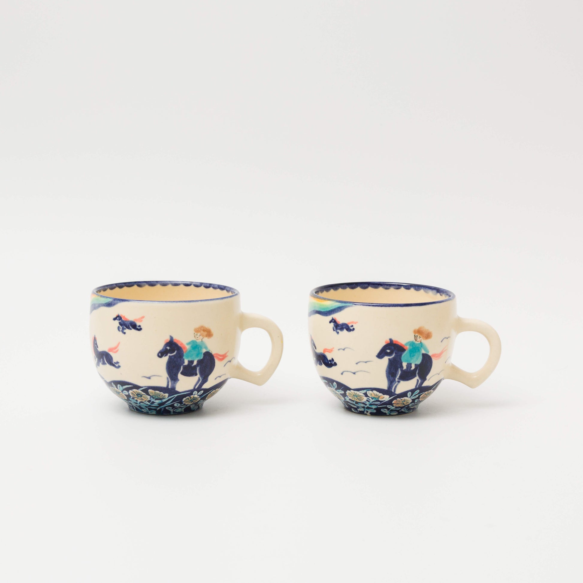 馬と風の気配がやさしく広がる、風景が描かれたカップです。