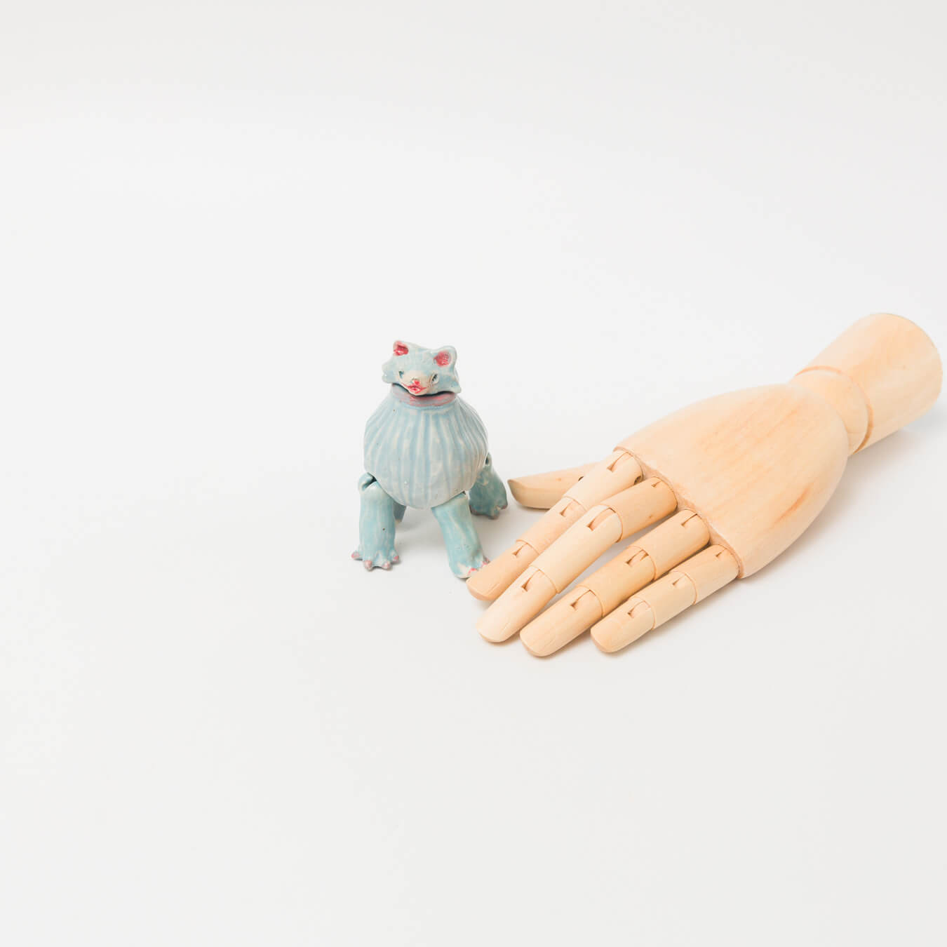 球体関節人形のように関節が動く、遊び心あふれる陶の人形。
