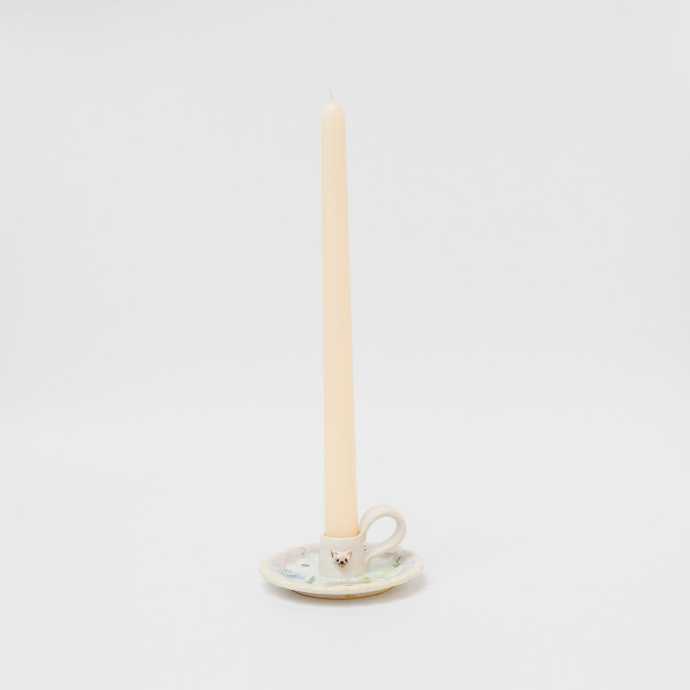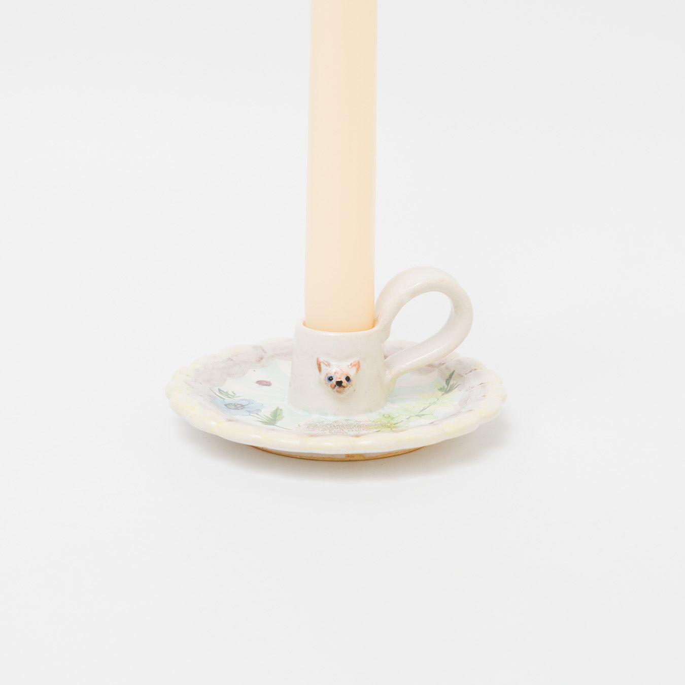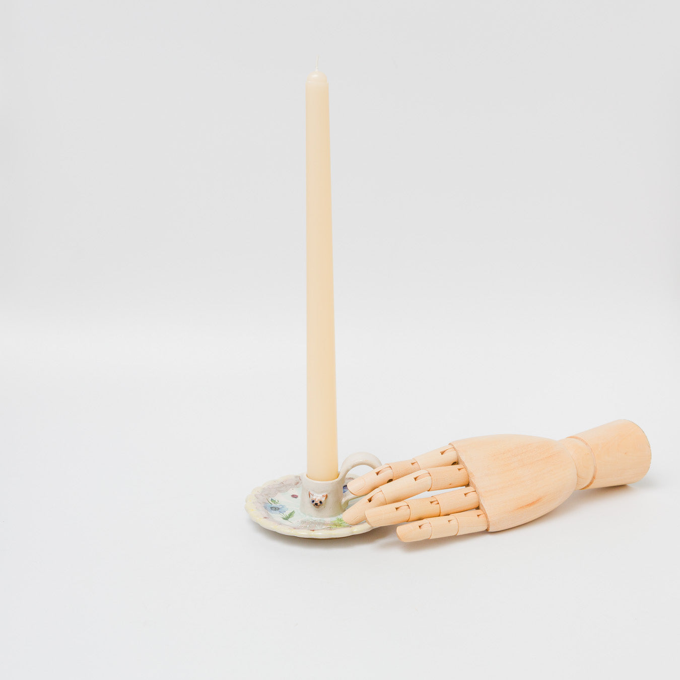 立体的な動物の顔のレリーフが愛らしく、植物などのモチーフがコラージュのように散りばめられ、幻想的で物語を感じる世界観が広がります。