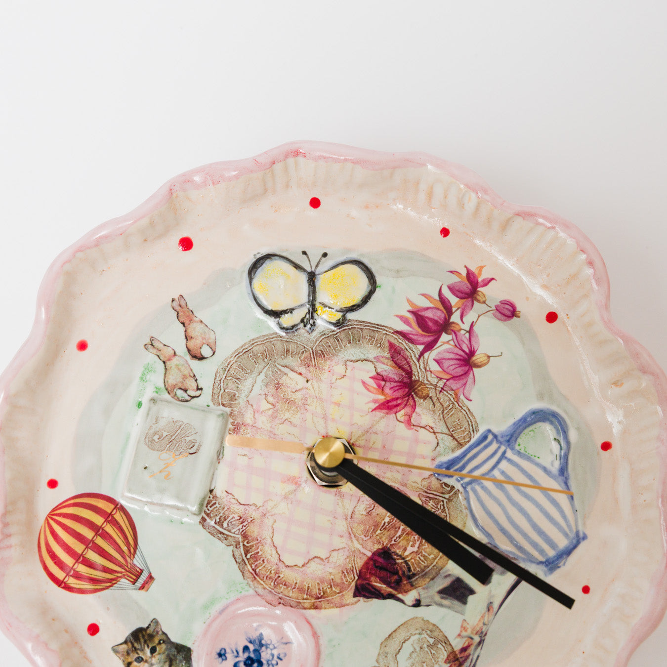 淡い色調に小さな猫や花、細やかな模様などがちりばめられた、物語のワンシーンのような世界観。