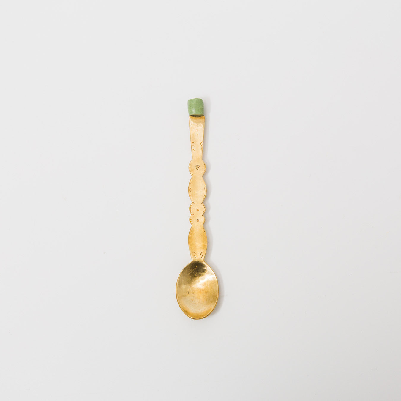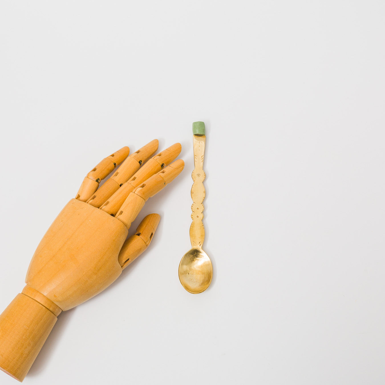 真鍮に陶パーツを組み合わせた、かわいらしいスプーン。