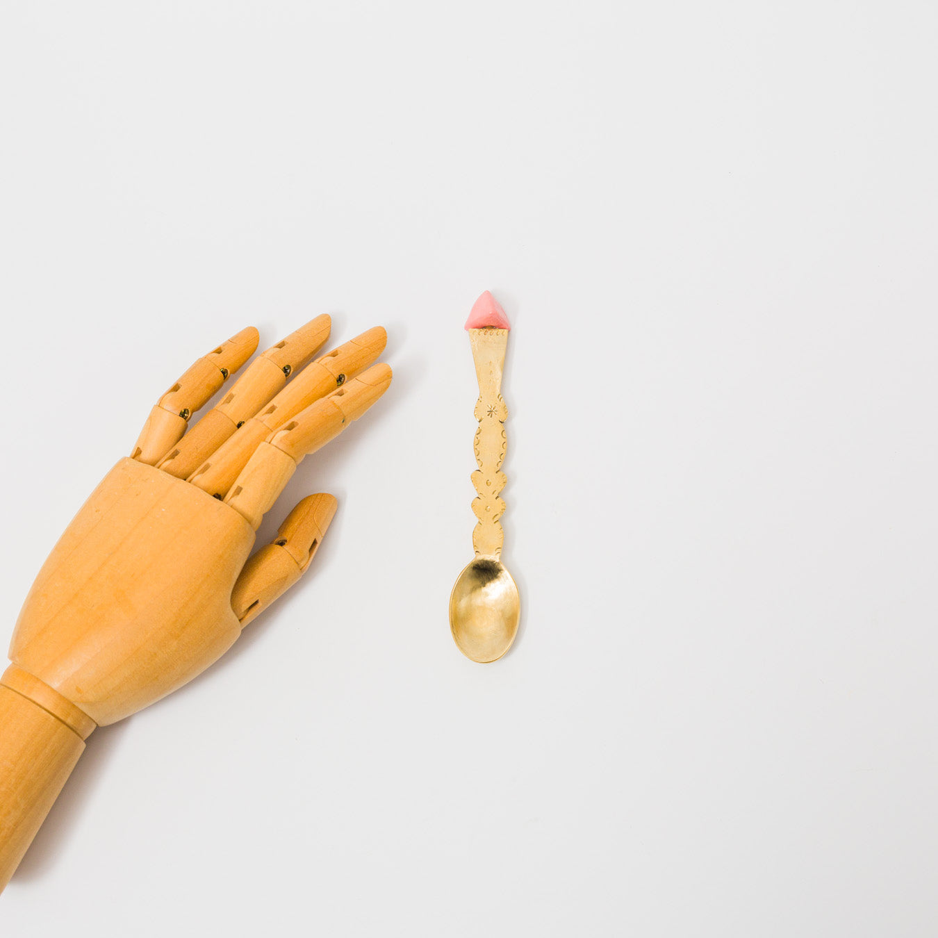 真鍮に陶パーツを組み合わせた、かわいらしいスプーン。