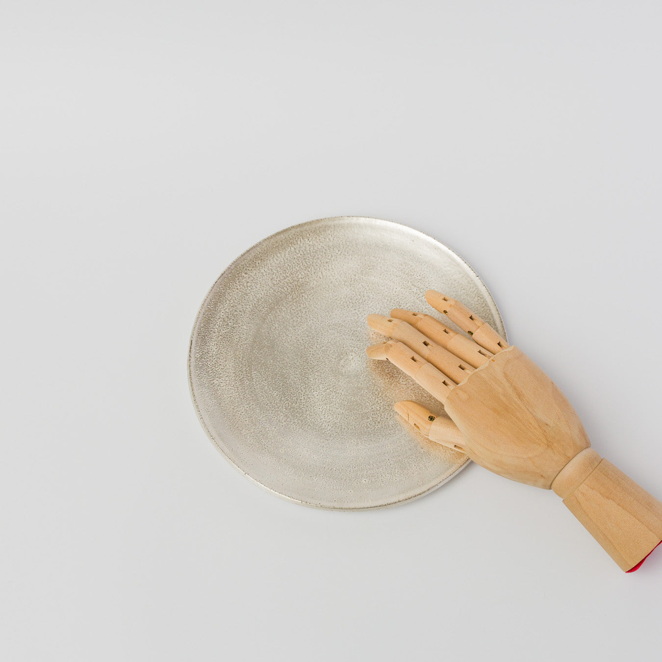 銀彩の器は、本焼き後に銀を焼き付けて仕上げています。 時とともに色合いが変化し、奥行きのある深みを増していくのも魅力のひとつです。