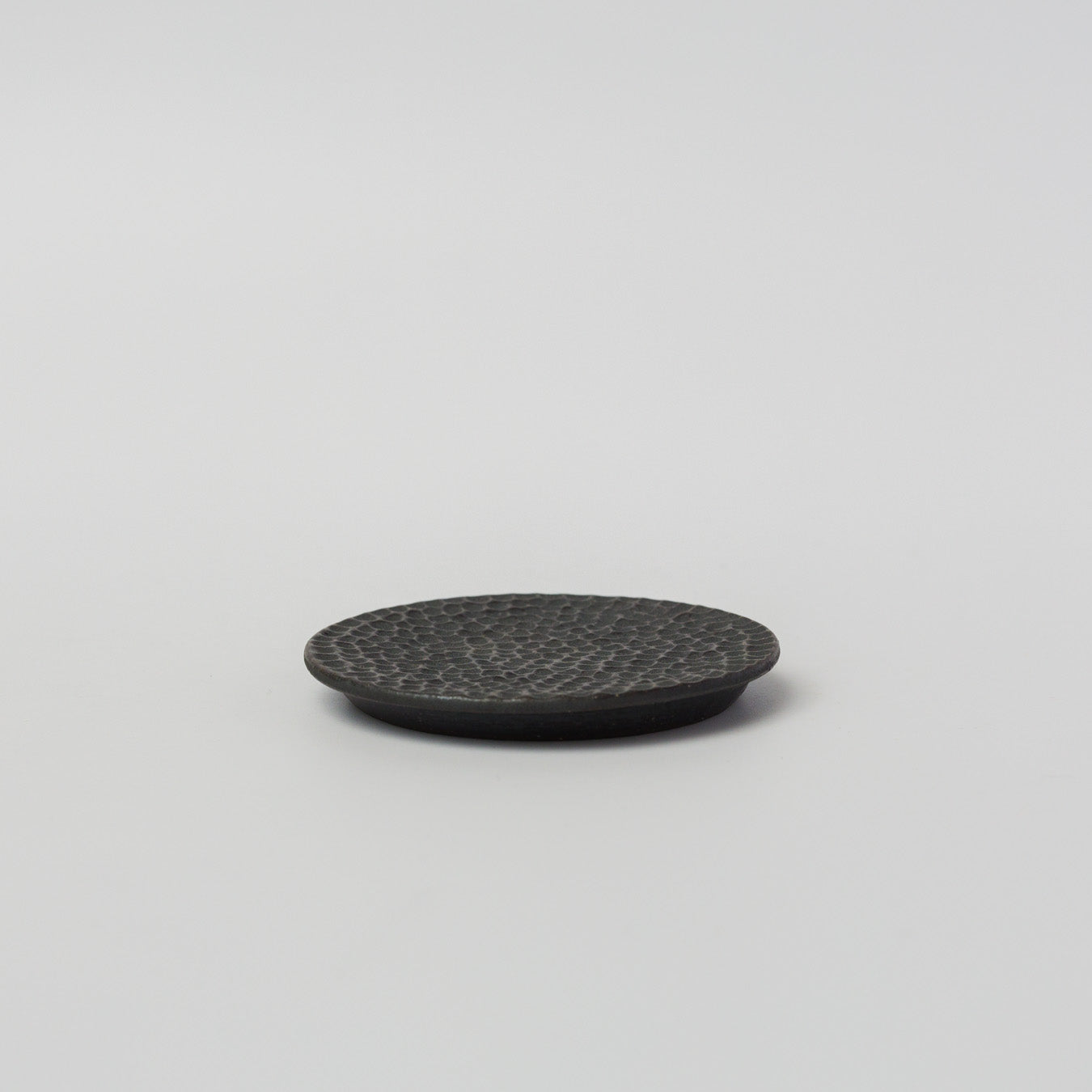 細やかな凹凸模様が施された、水玉模様の小さな豆皿。