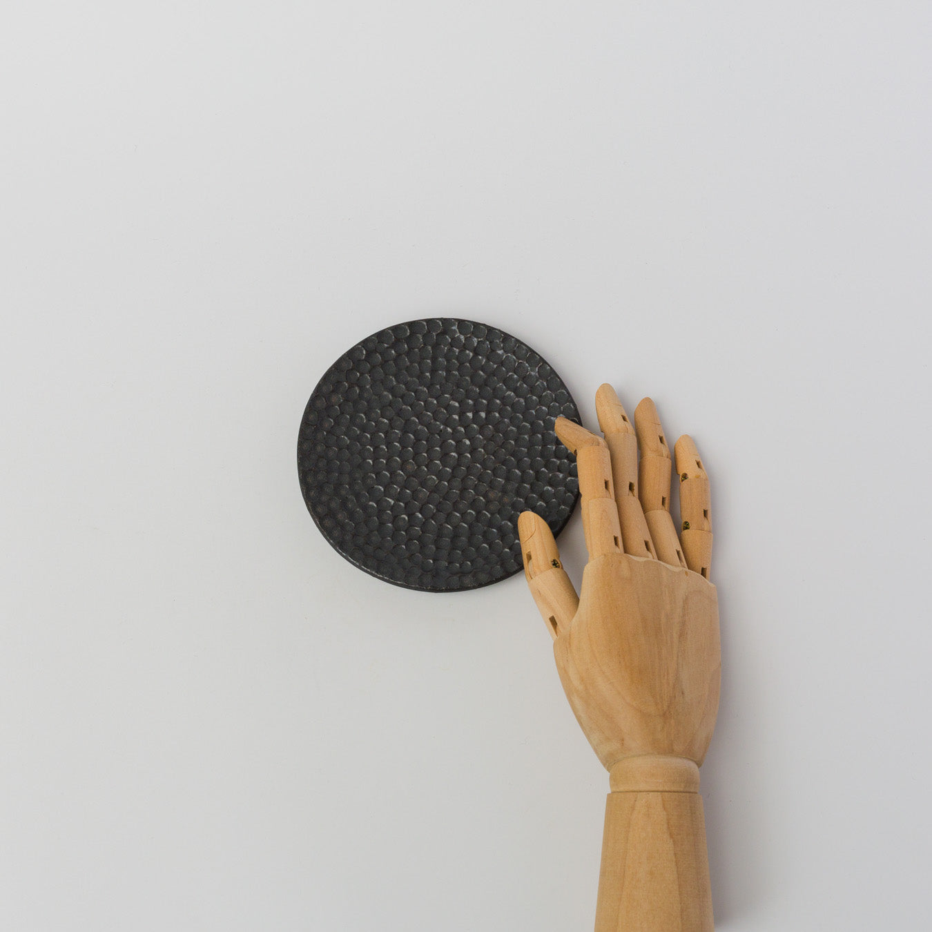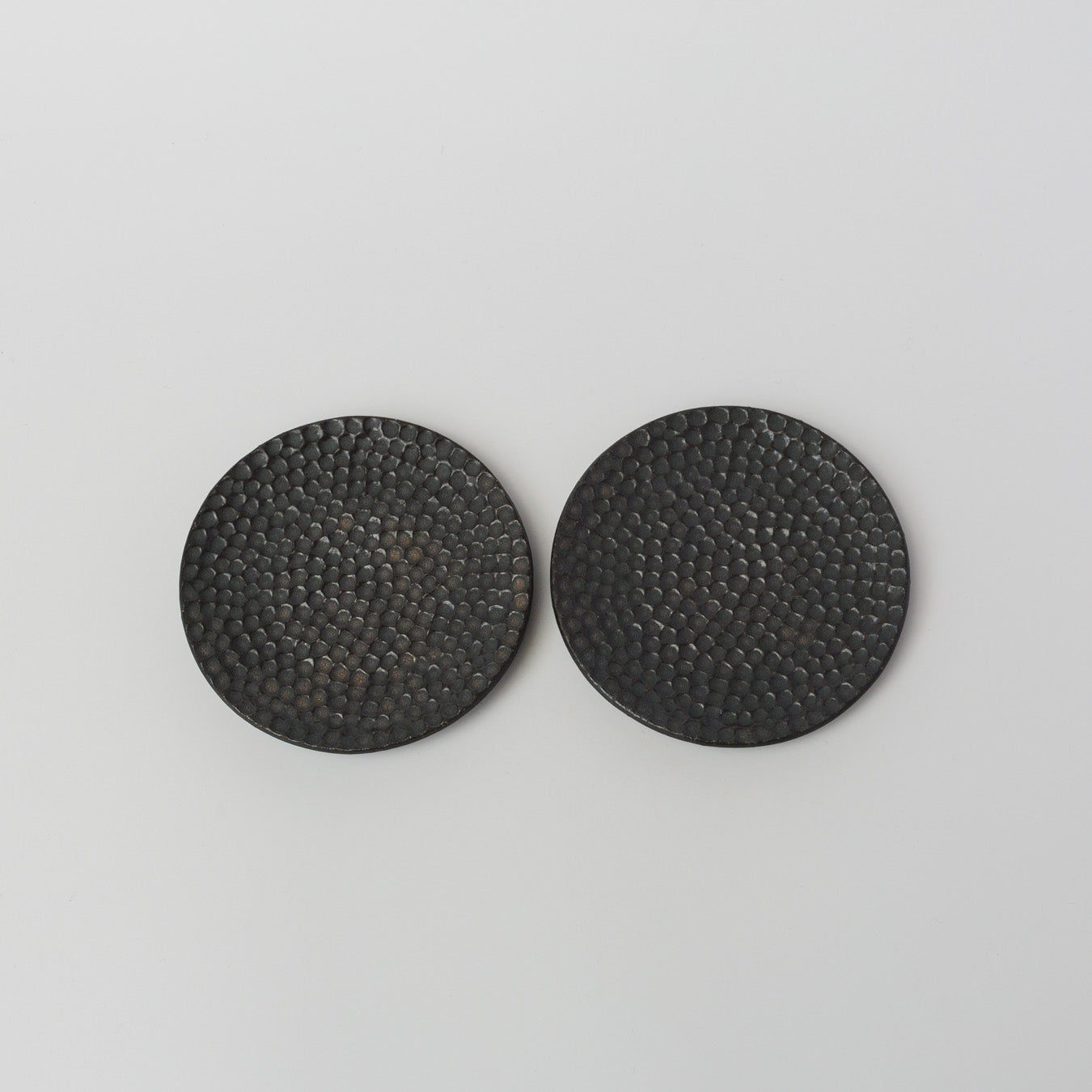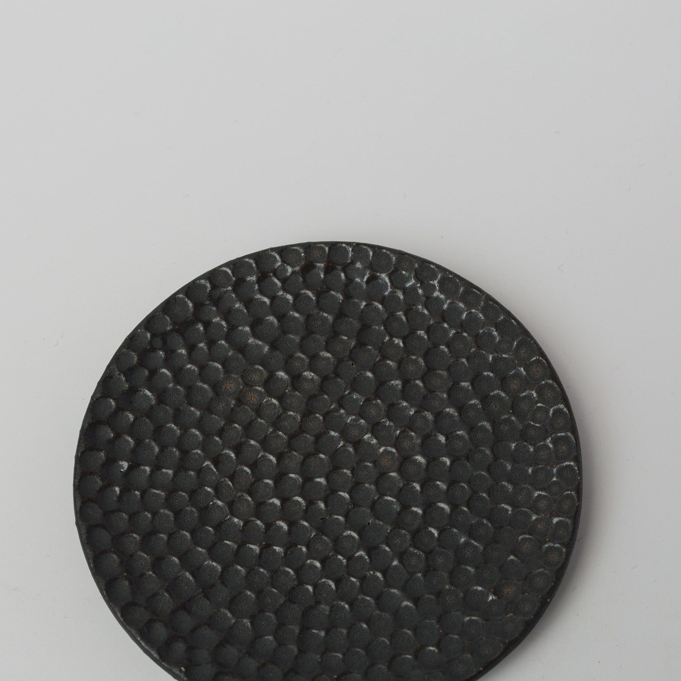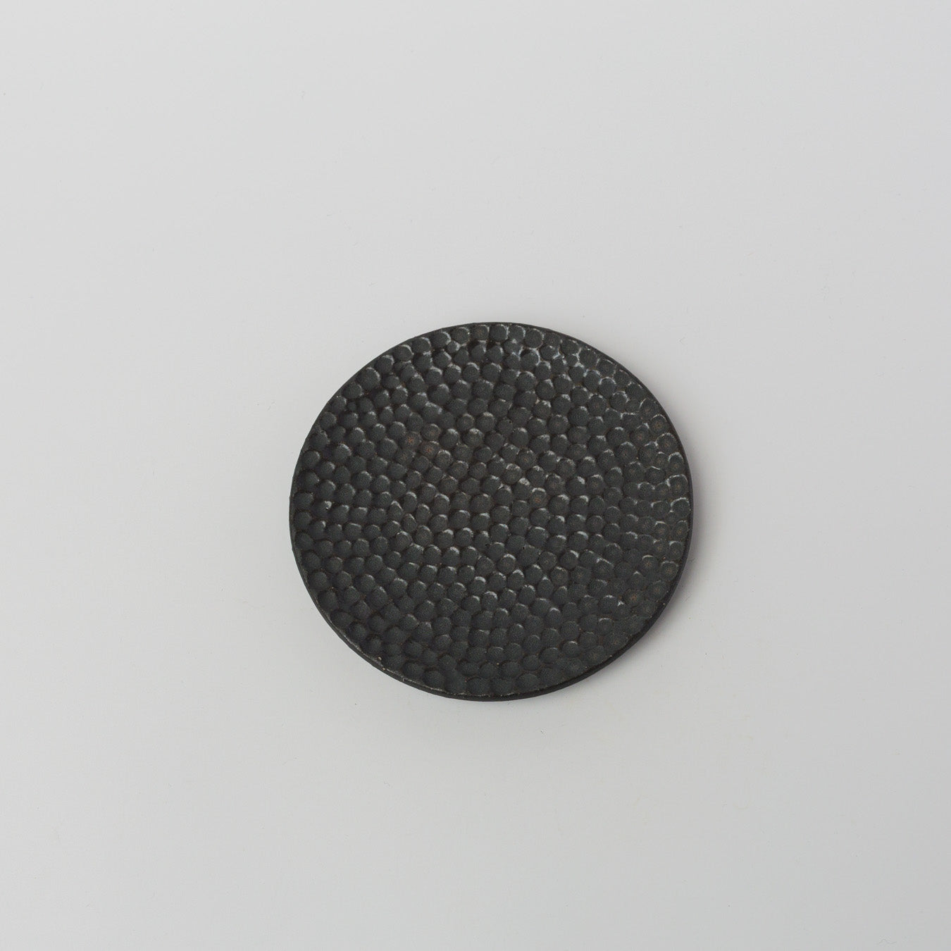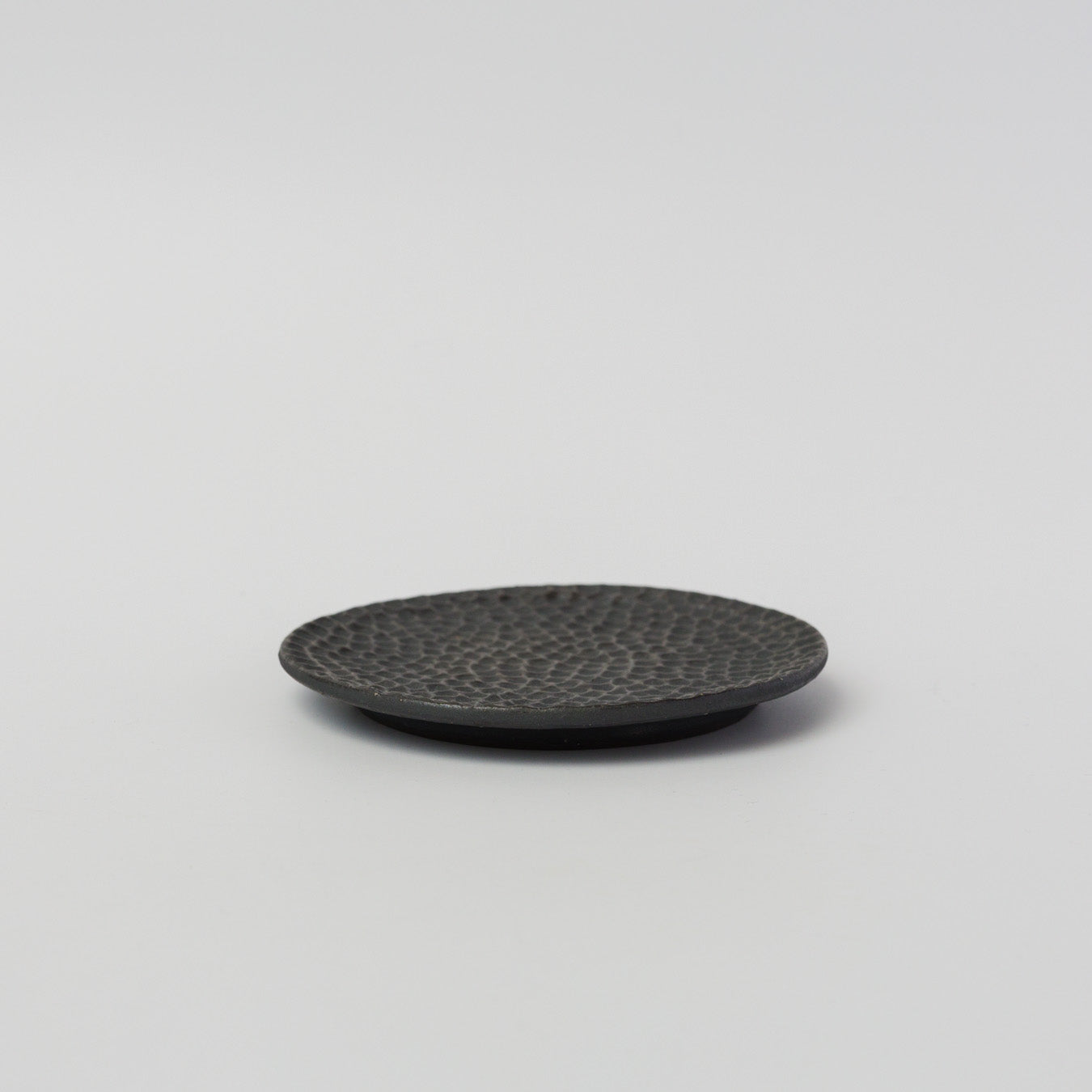 細やかな凹凸模様が施された、水玉模様のフラットな菓子皿。