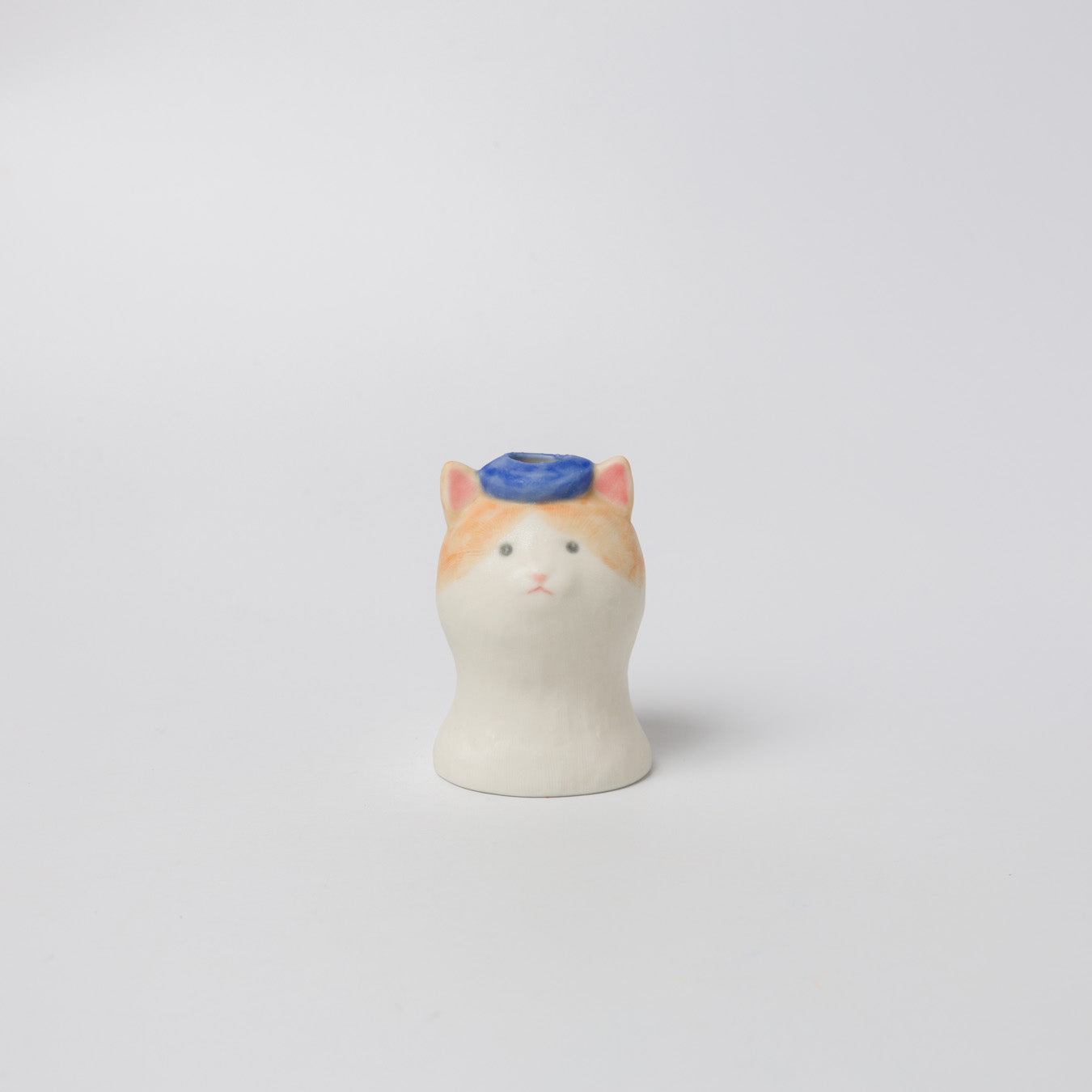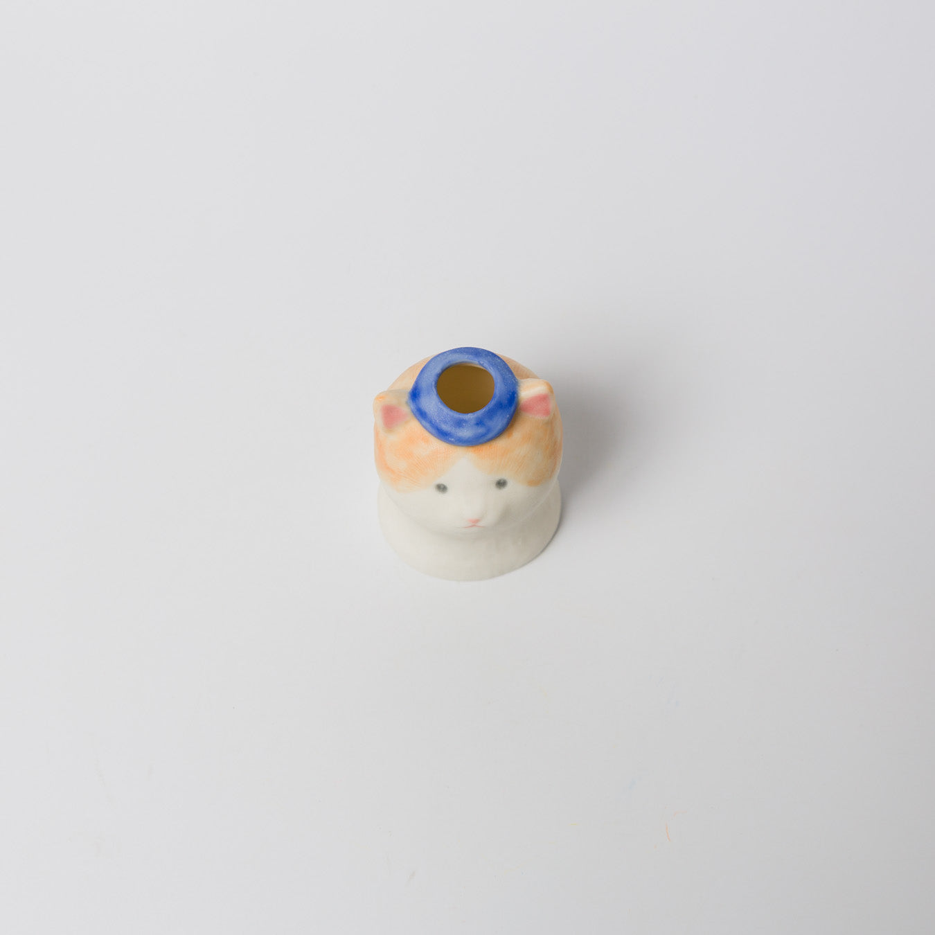 頭の上に花を生けられる、ユニークな表情が印象的な一輪挿し。