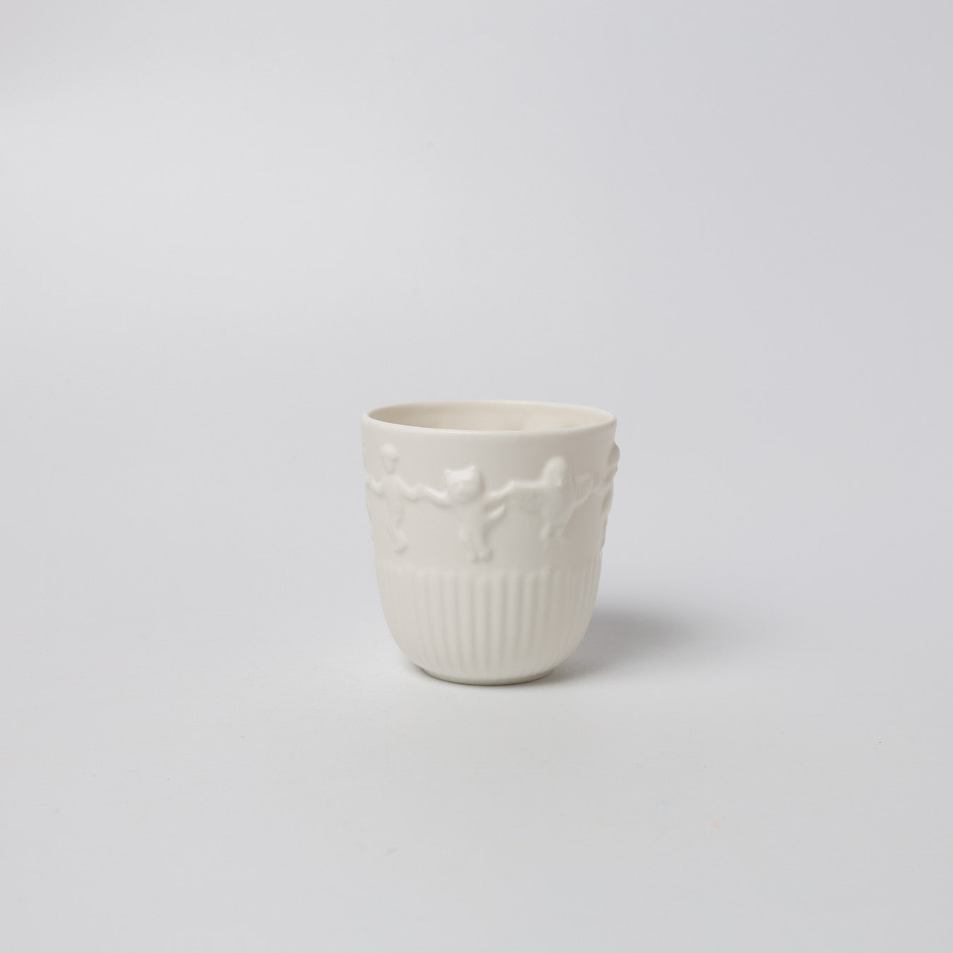 子どもと動物が仲良く手をつなぐ、にぎやかで楽しいカップ。