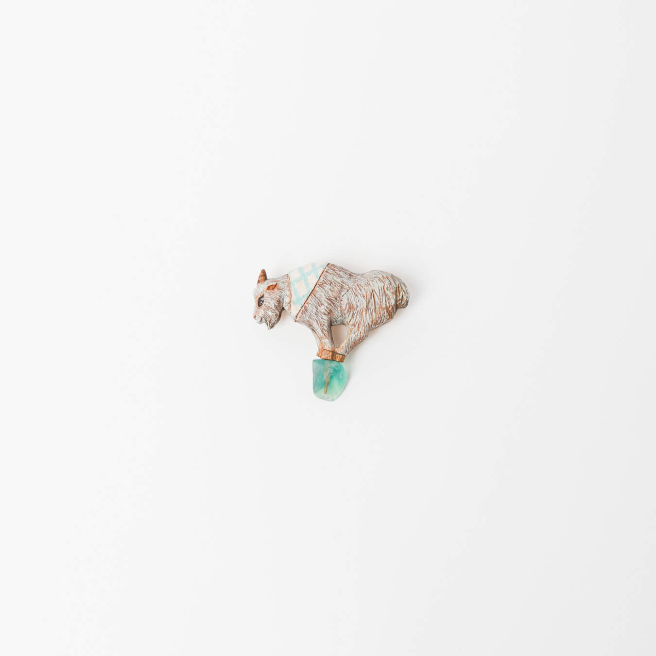 足場の少ない崖の上で、静かに佇むヤギをモチーフにしたブローチ。