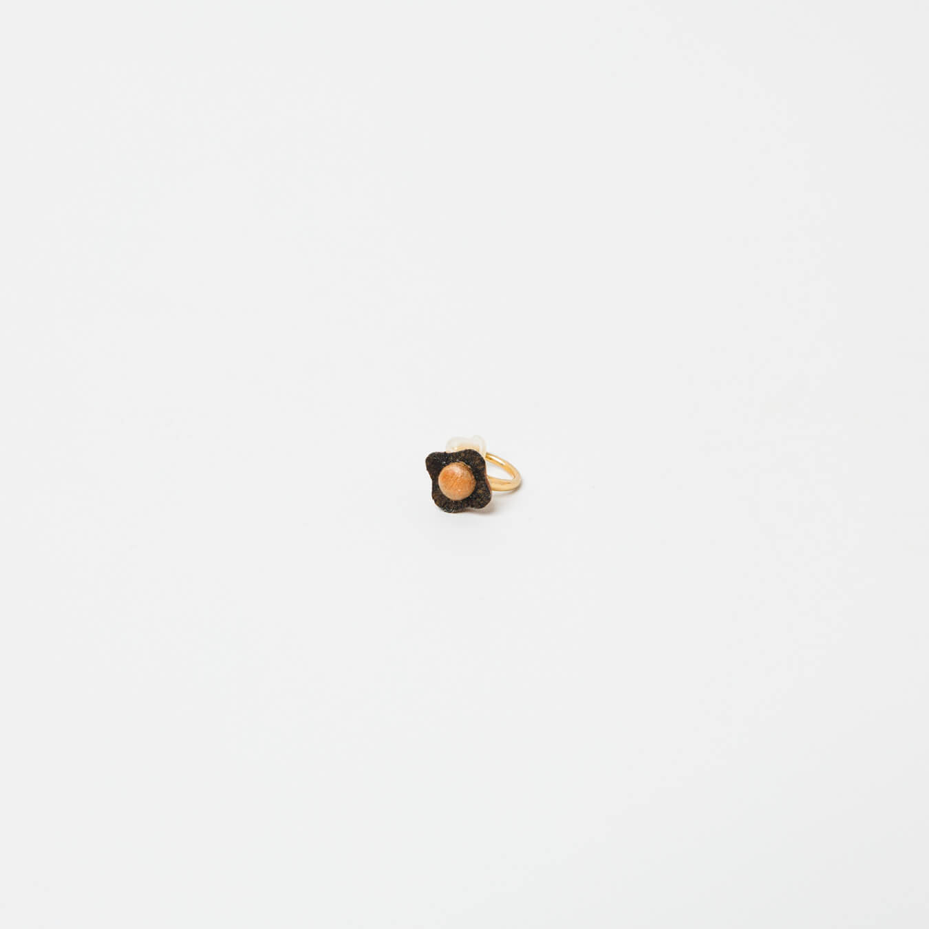 kitona-ミニ花イヤカフ-木ビーズブラック