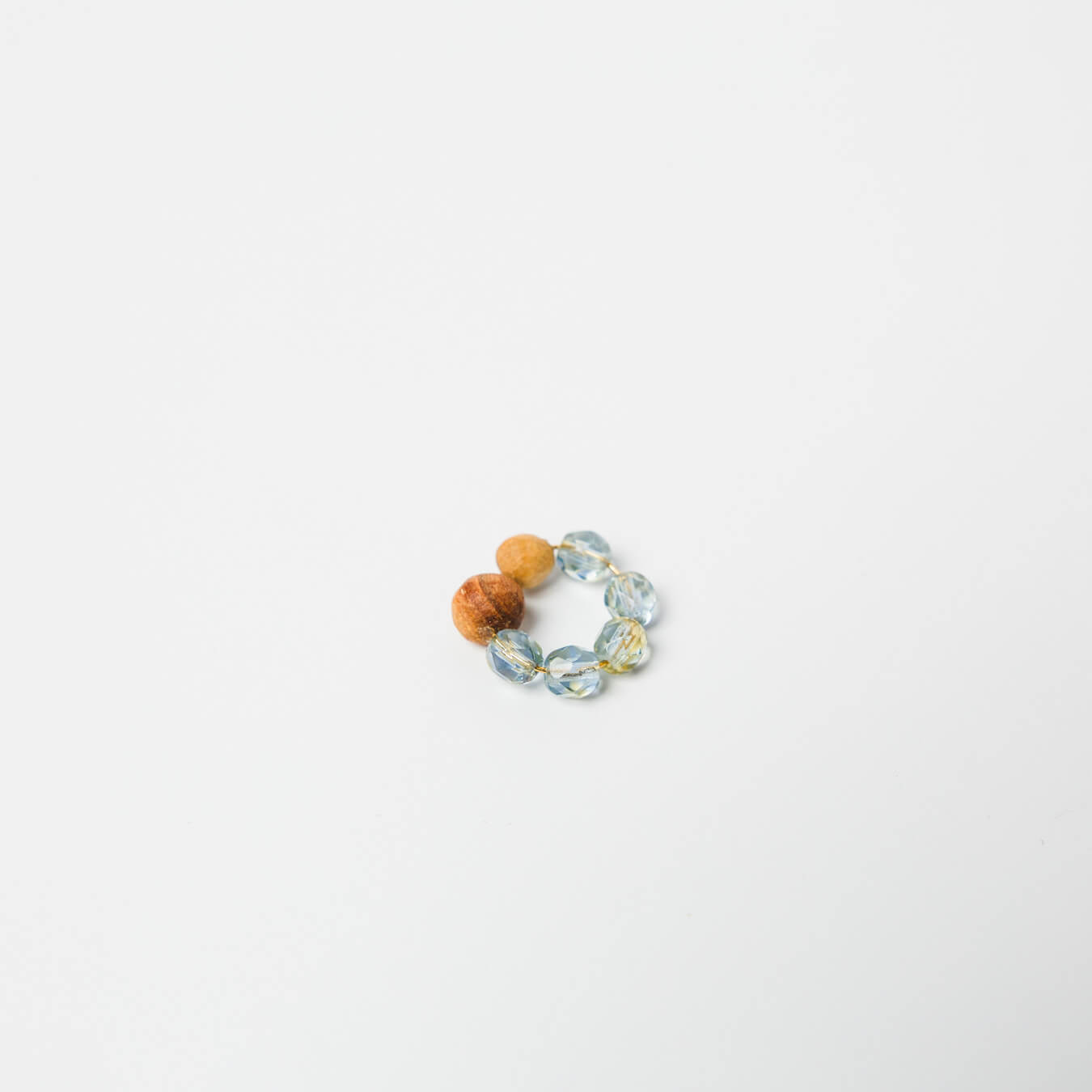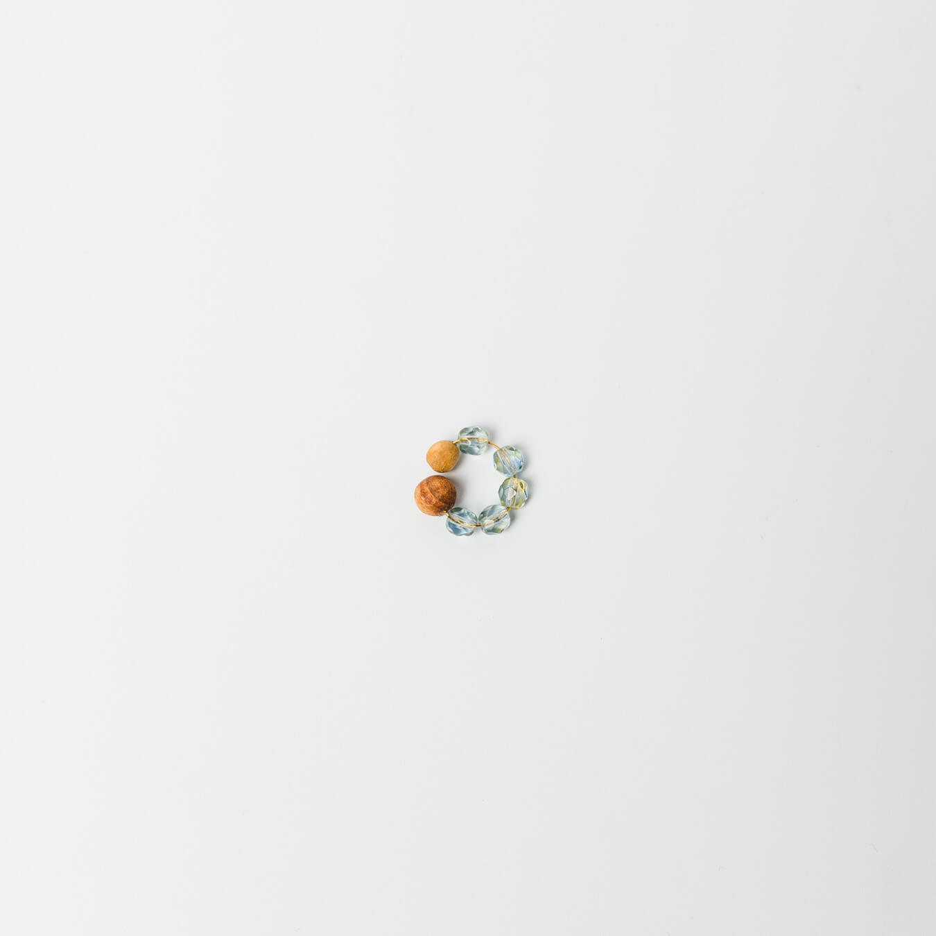 チェコビーズの透明感を、木のあたたかさが包み込みます。