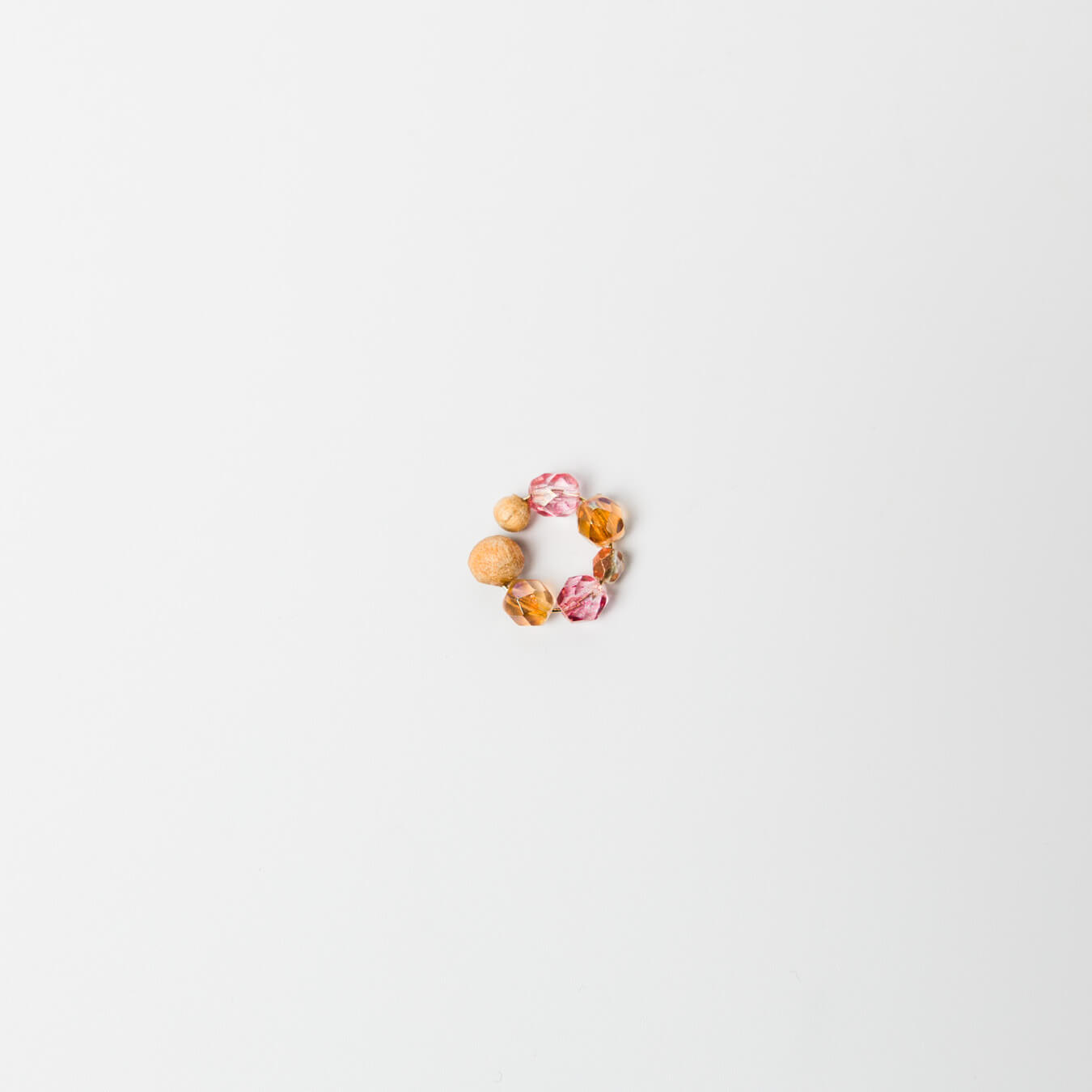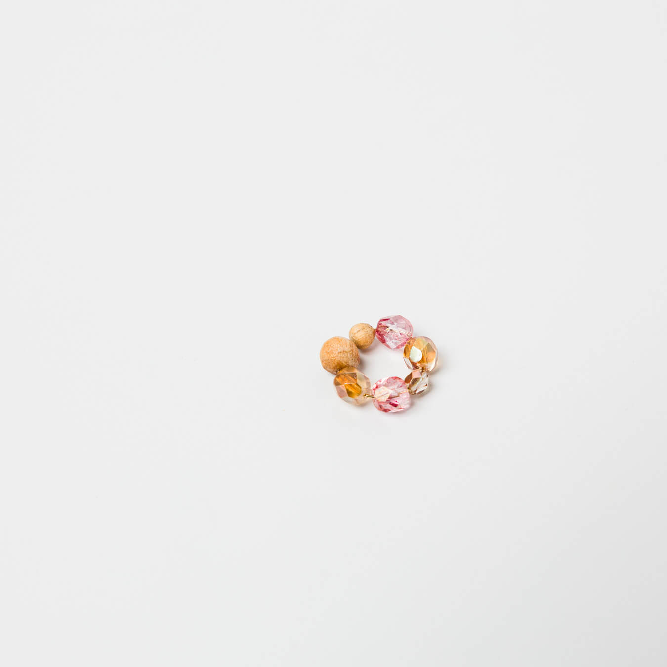 チェコビーズの透明感を、木のあたたかさが包み込みます。