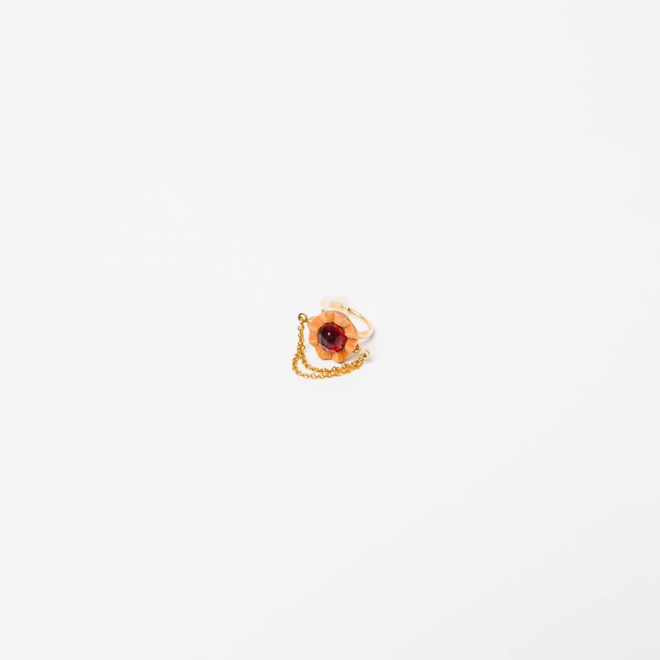 kitona-イヤカフ-プリーツフラワーSS(チェーン付)-ガーネット