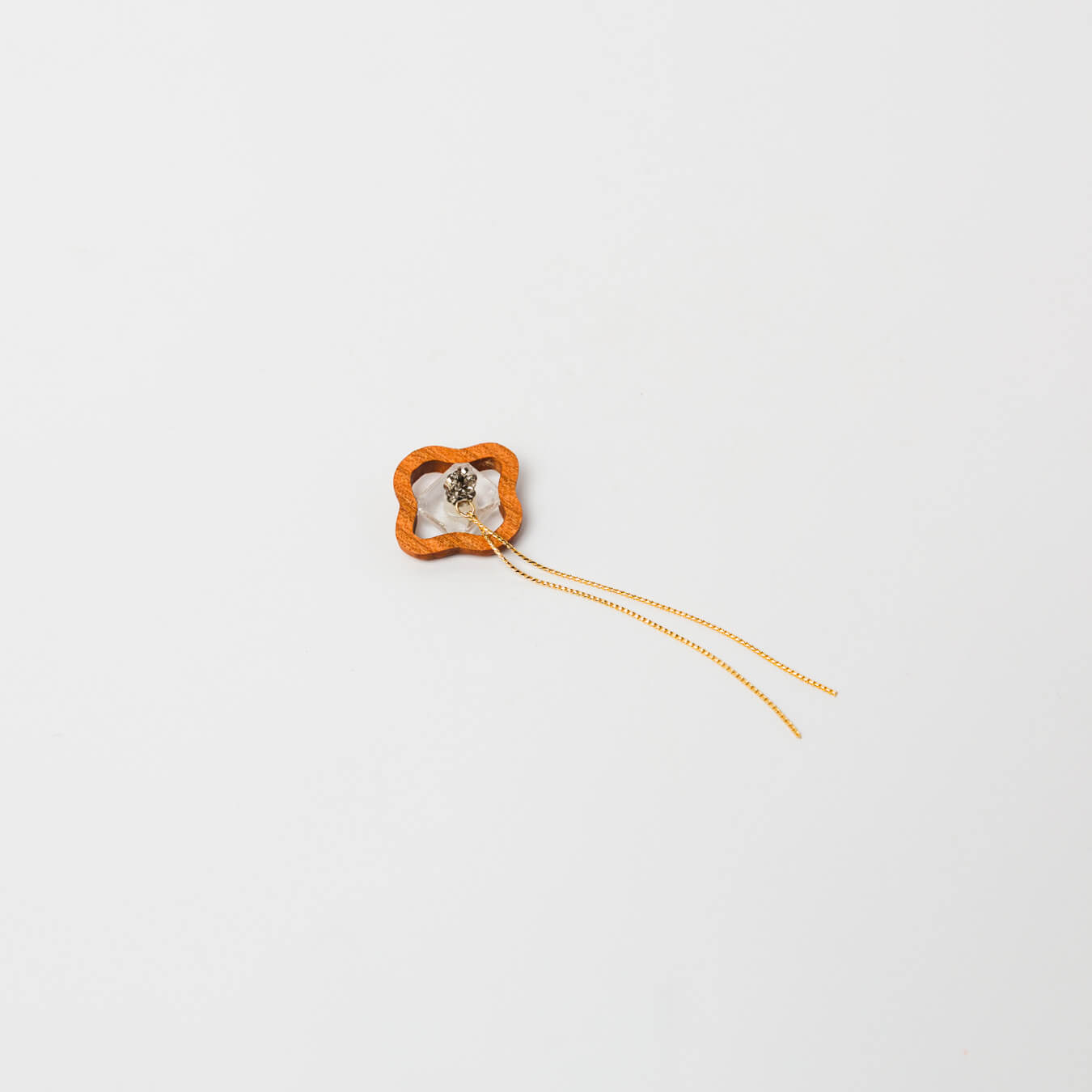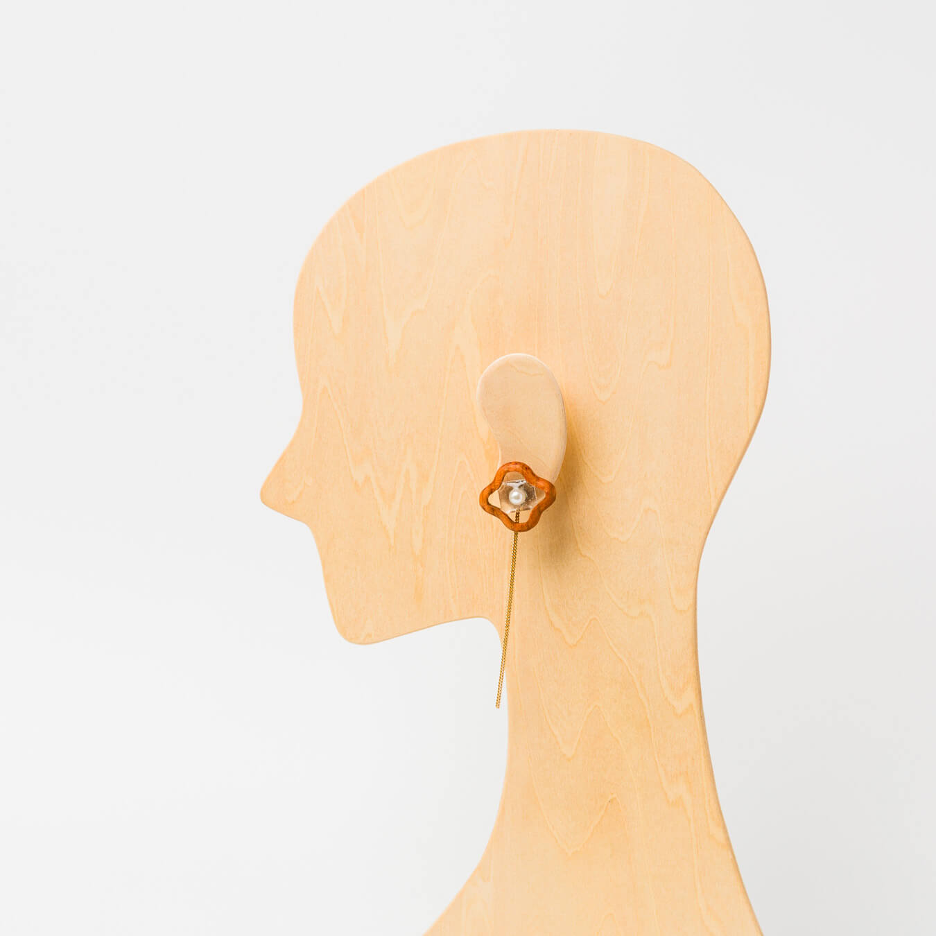 お花のような木の枠に樹脂をはめこんだ耳飾り。片耳タイプ。