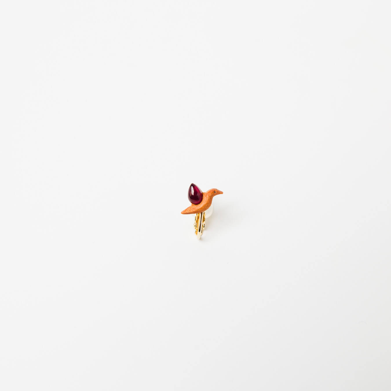 極小のハチドリと、羽に見立てた天然石ピンクトルマリンを組み合わせた片耳イヤリング。