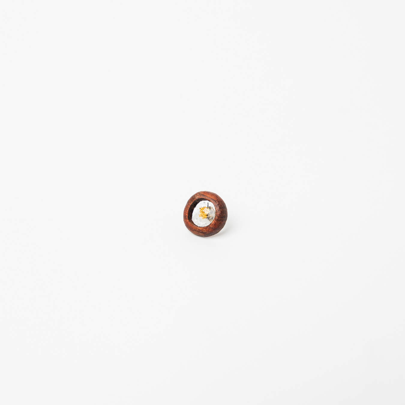 一粒ずつ固めた樹脂の中に、金箔を閉じ込めたピアス。片耳タイプ。
