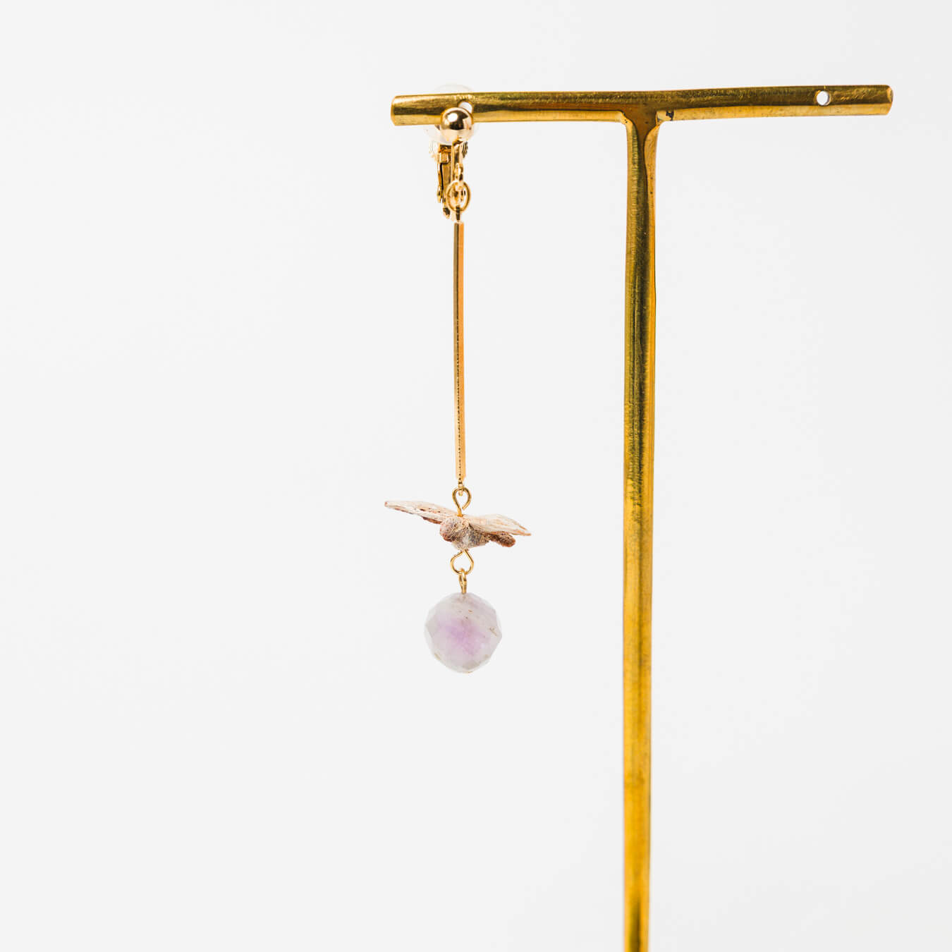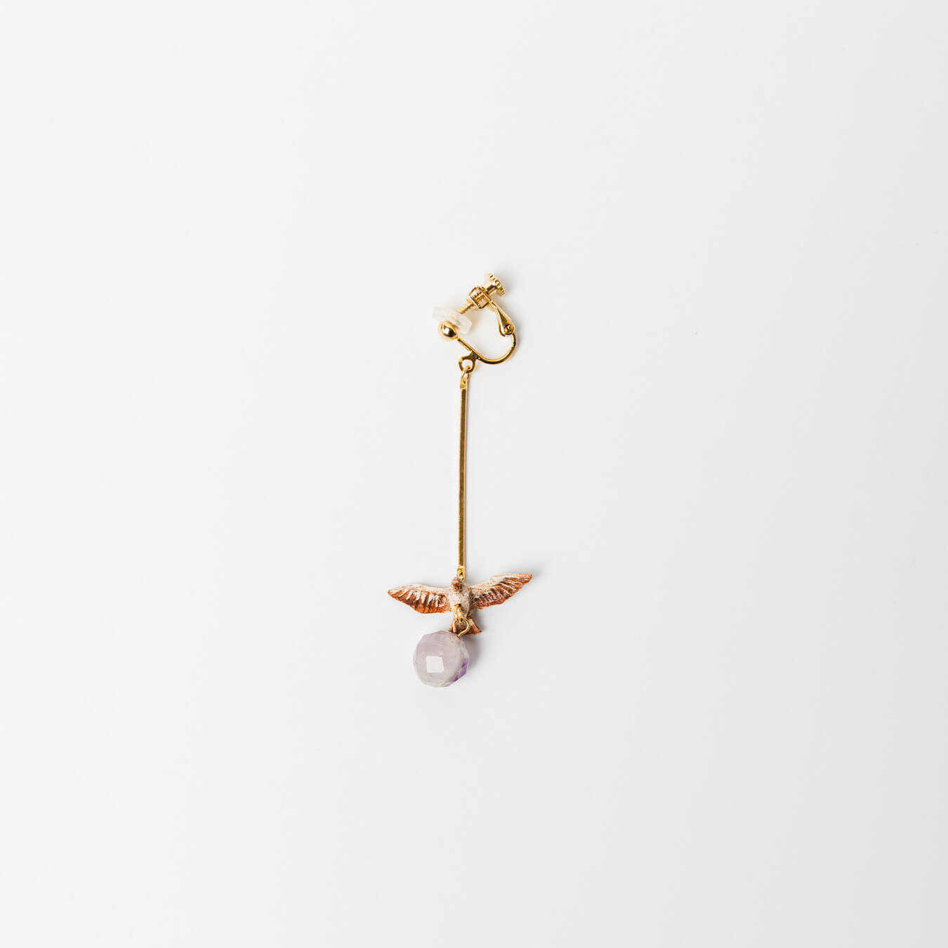 ゆらゆらと飛ぶ鳥が、そっとアメジストを運ぶ片耳イヤリング。