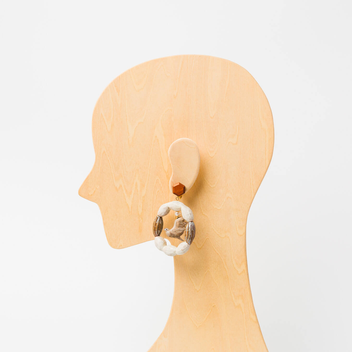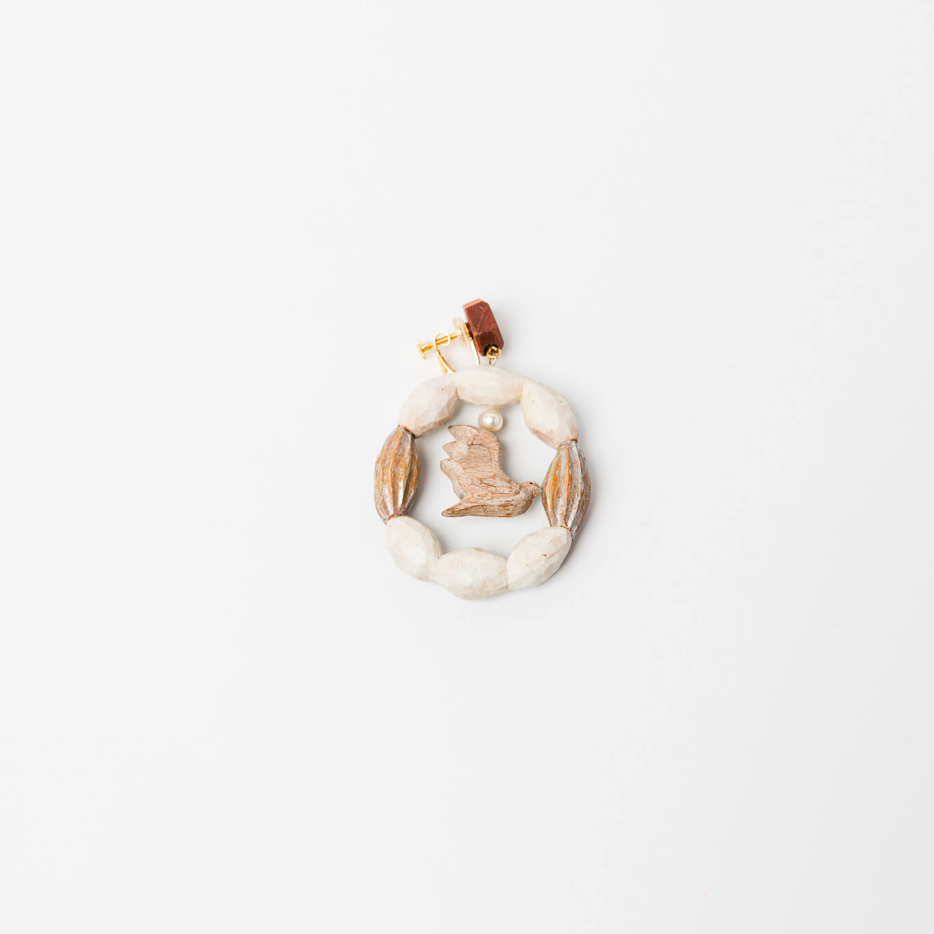 kitonaさんの作品です。木と“なにか”を組み合わせて生まれる、小さな物語のような世界。 日々の装いに、ときめきを添えるアイテムを制作されています。