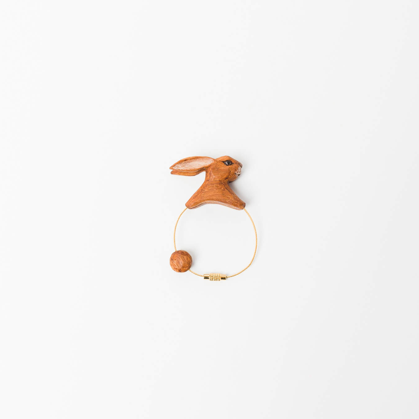 木のぬくもりと穏やかな表情が、日々の持ち物にやさしく寄り添います。つぶらな瞳には艶があり、どこか生き生きとした表情をしています。