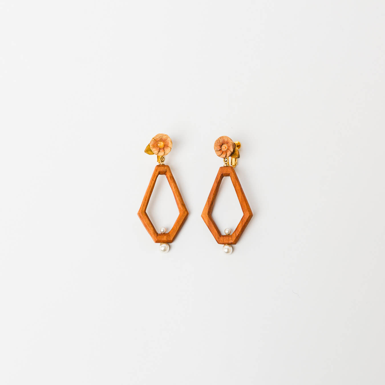 kitona-耳飾り-花と多角形-ナチュラル-イヤリング