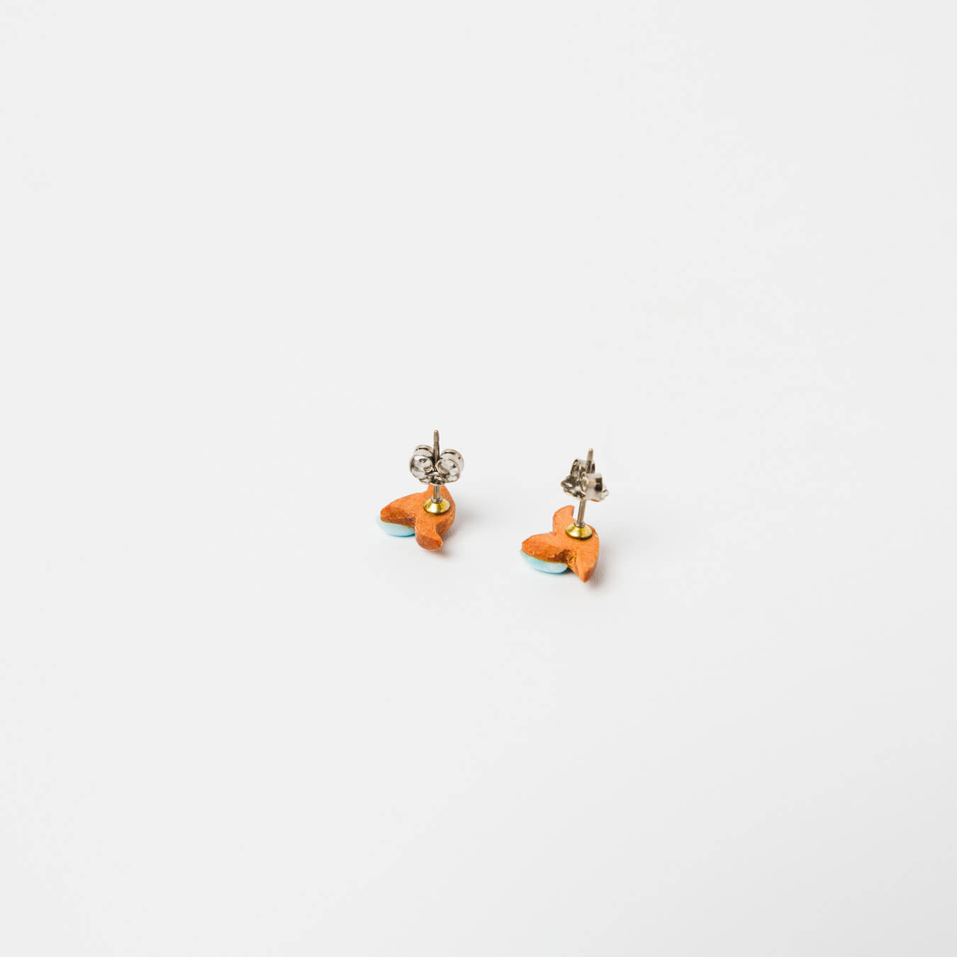 極小のハチドリと、羽に見立てた天然石を組み合わせた耳飾り。両耳タイプ。