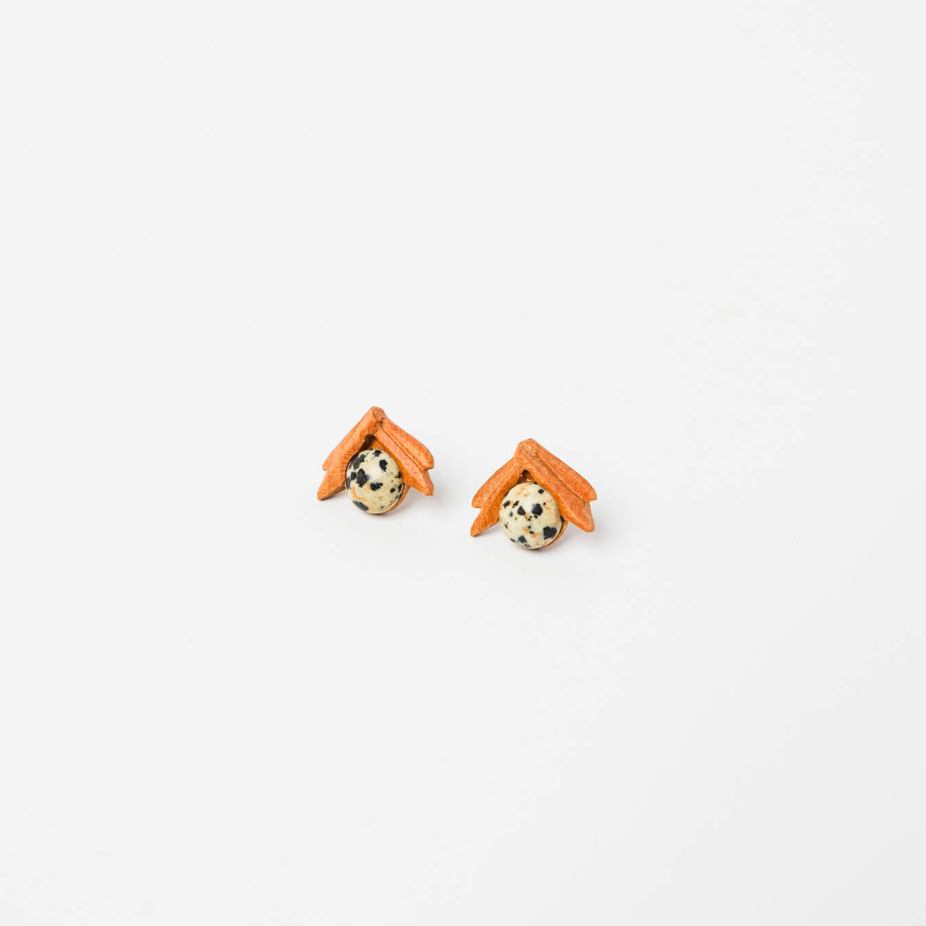 | 素材 | 木(かつら)、天然石(ダルメシアンジャスパー)、金具:ピアスはチタン、イヤリングは真鍮 |