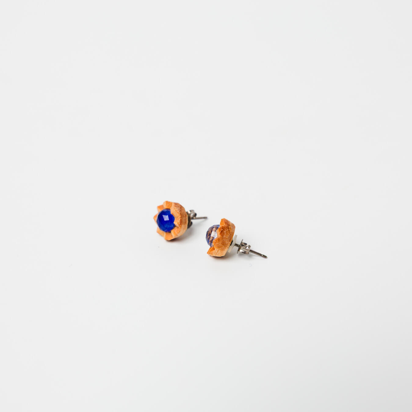 木のぬくもりと澄んだ青が調和し、上品で知的な印象を添え、 季節や装いを問わずお楽しみいただける耳飾りです。