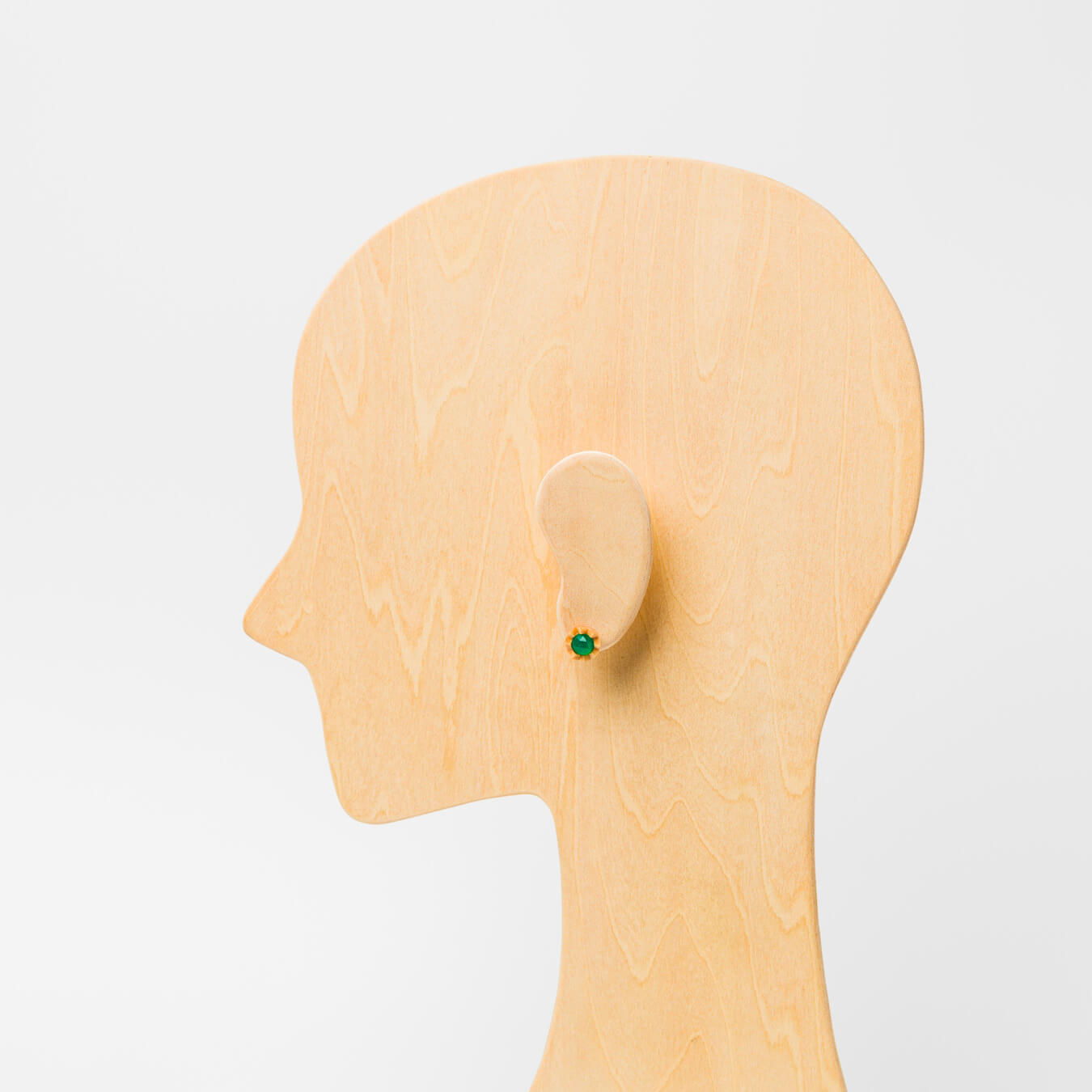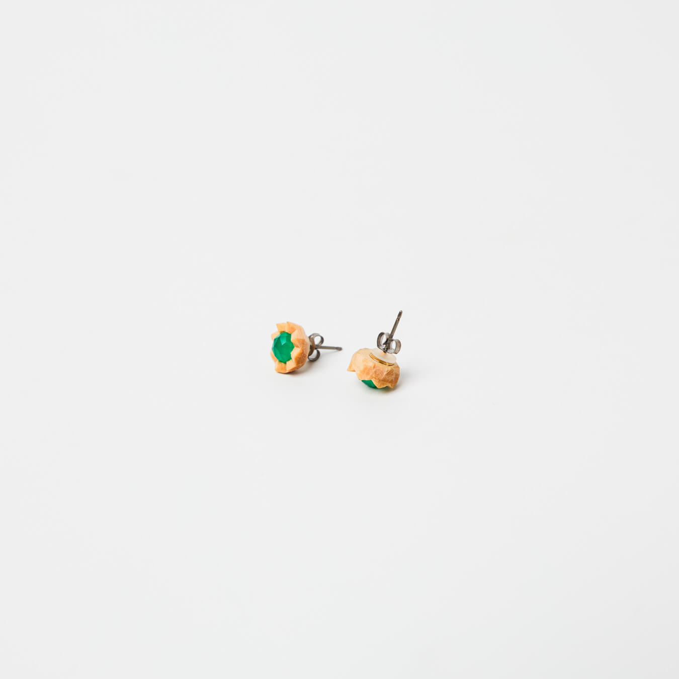 グリーンオニキスの深みのあるグリーンが、木のぬくもりと調和し、落ち着いた上品さを耳元に添えます。