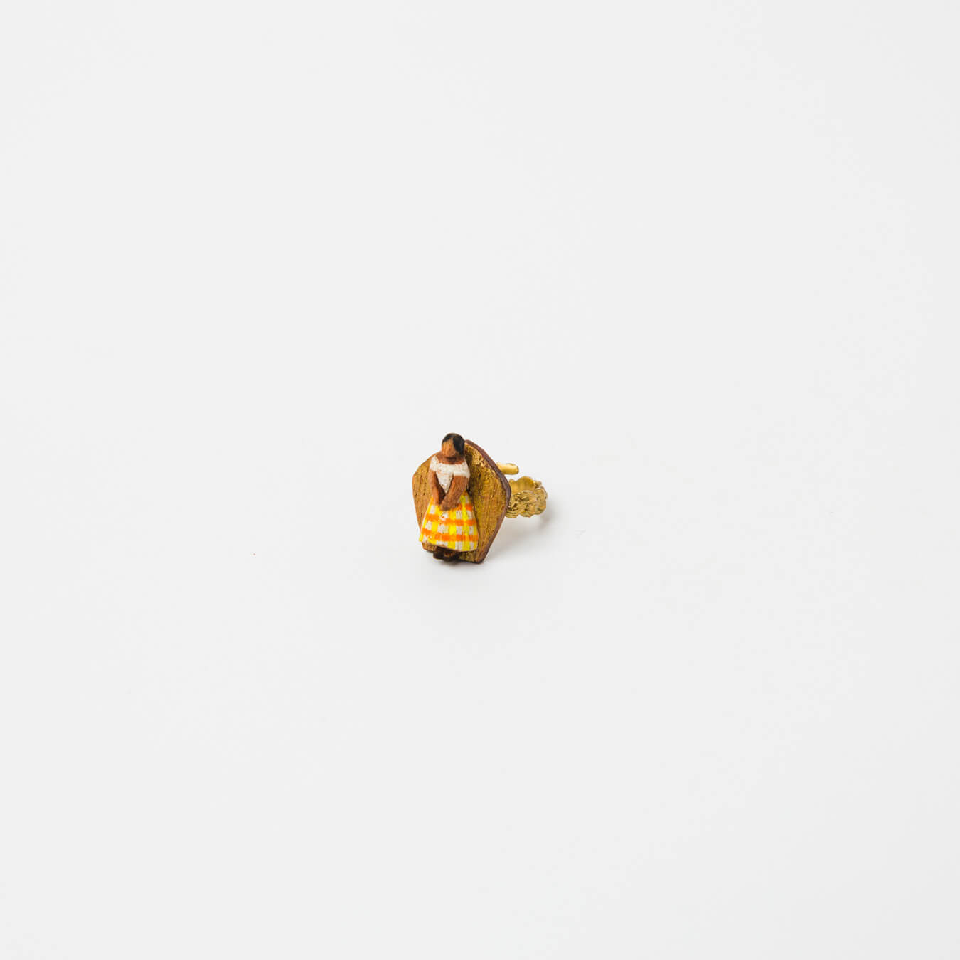 彩色されたスカートの柄が印象的で、小さな物語を感じさせるような佇まいです。